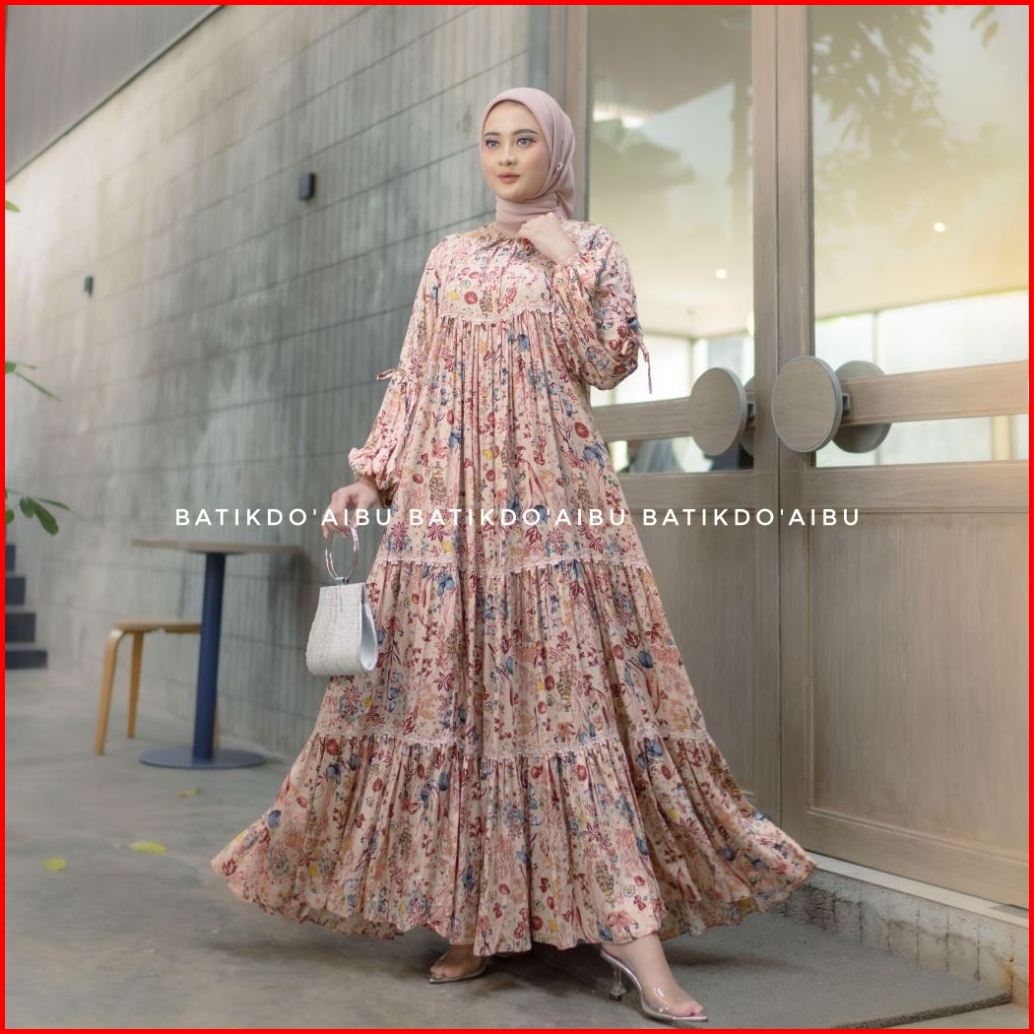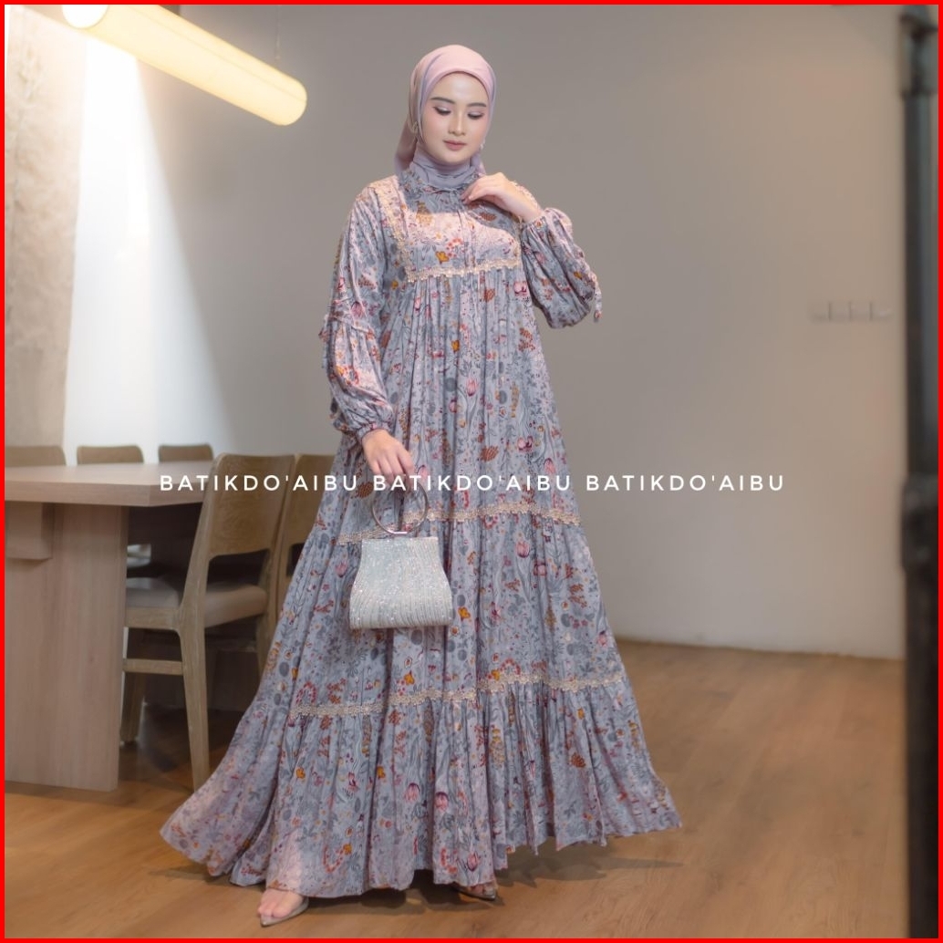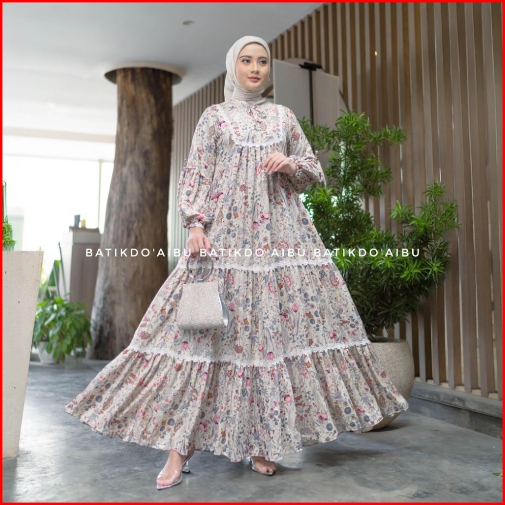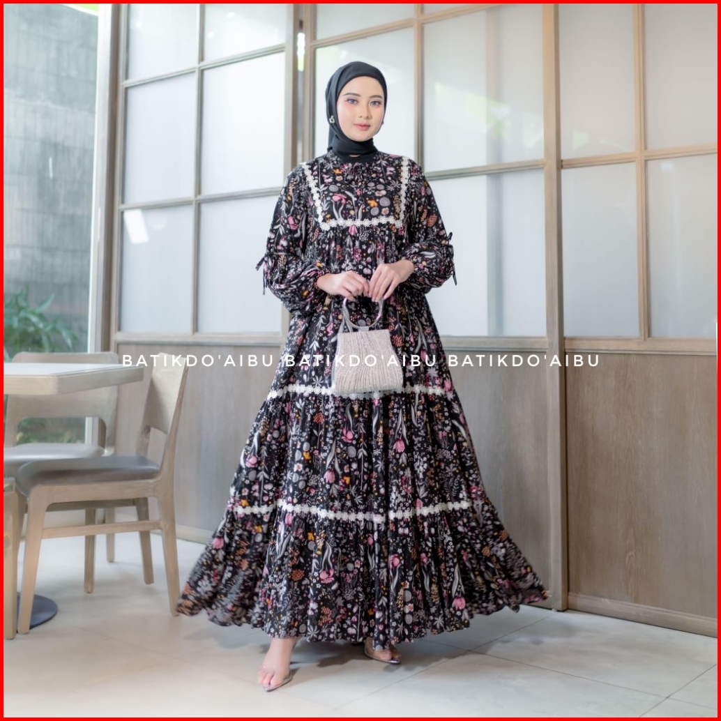 Hayvana Renda Dress - Gamis Rempel Renda Gamis Susun Lengan Balon Pita Gamis Rayon Premium