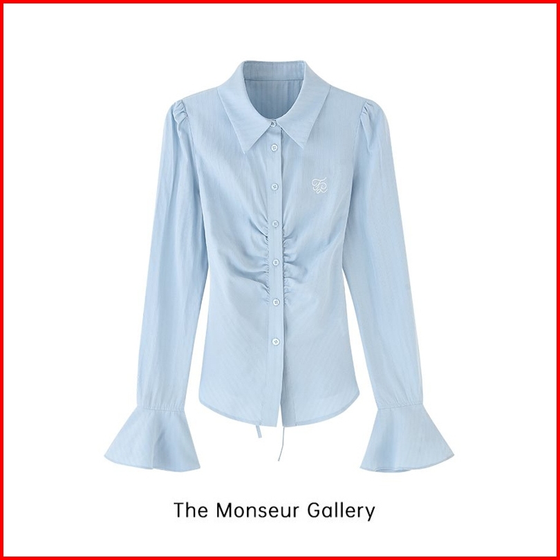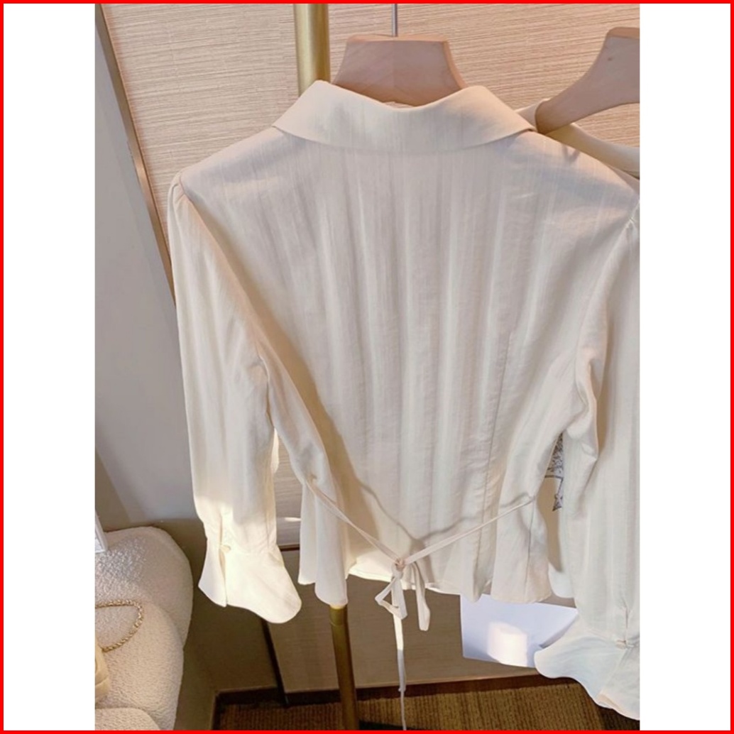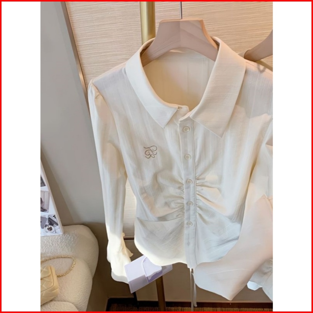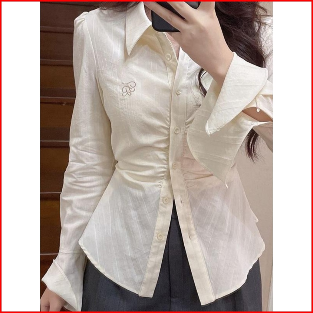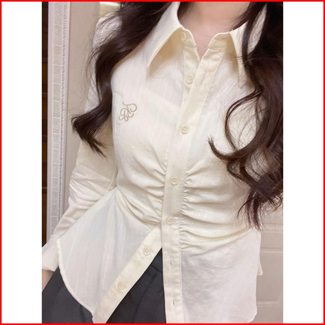 The Monseur Gallery Kemeja Ramping Pinggang Aprikot Gaya Korea Kemeja Temperamen Kerah Atas Untuk Wanita