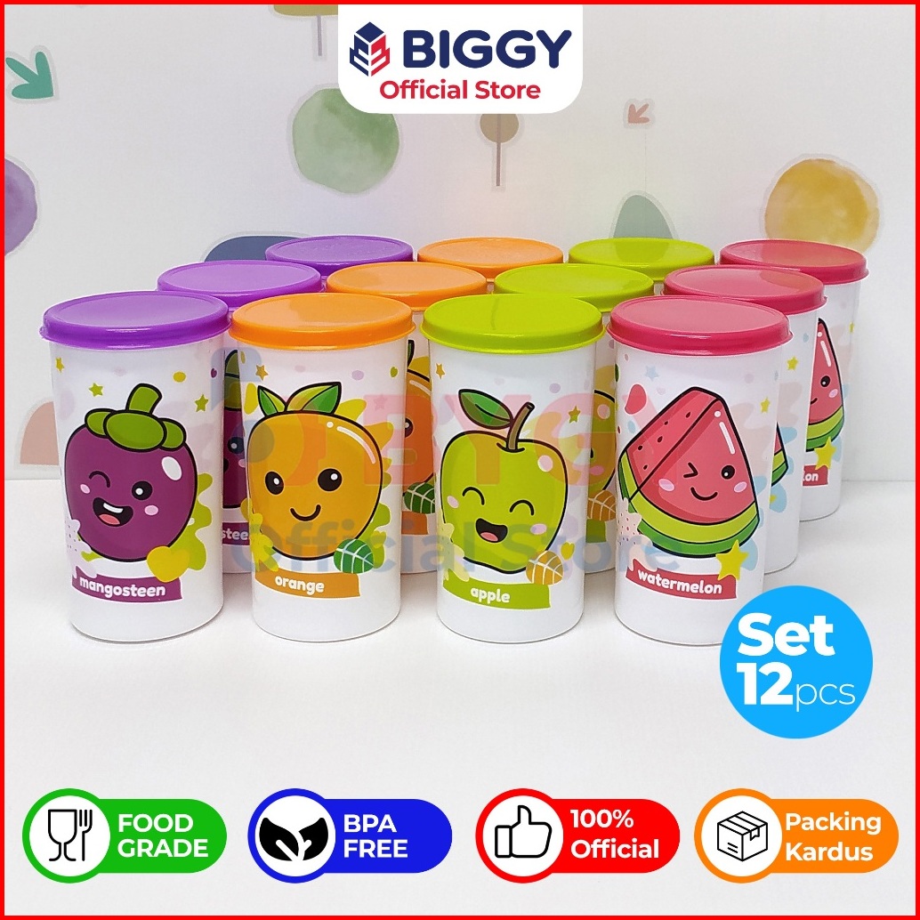 Biggy Lusin Set 12 Pcs Gelas Tutup Small Fruitamin 400ml Botol Minum Anak Tumbler Souvenir Ulang Tahun