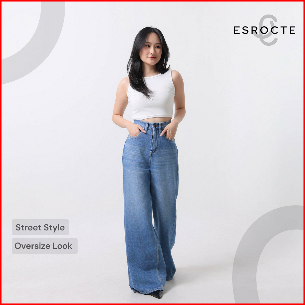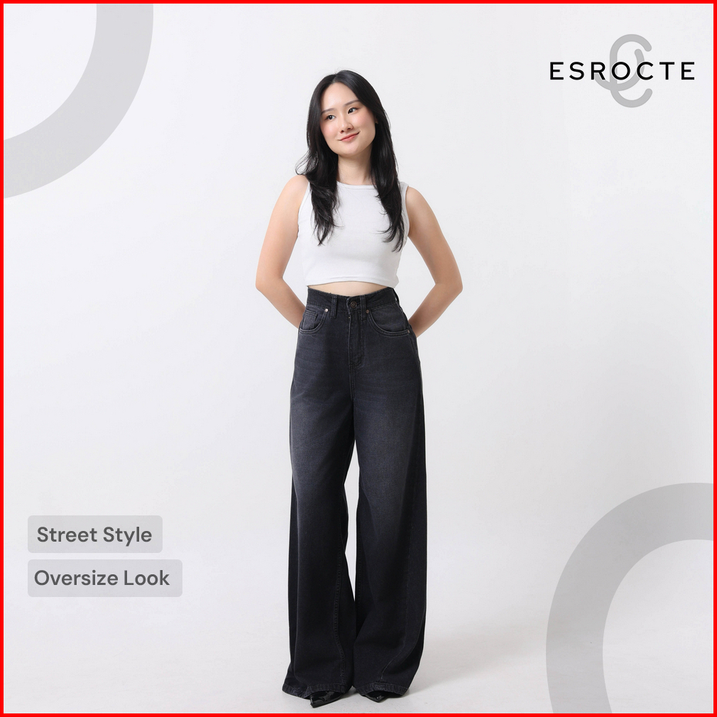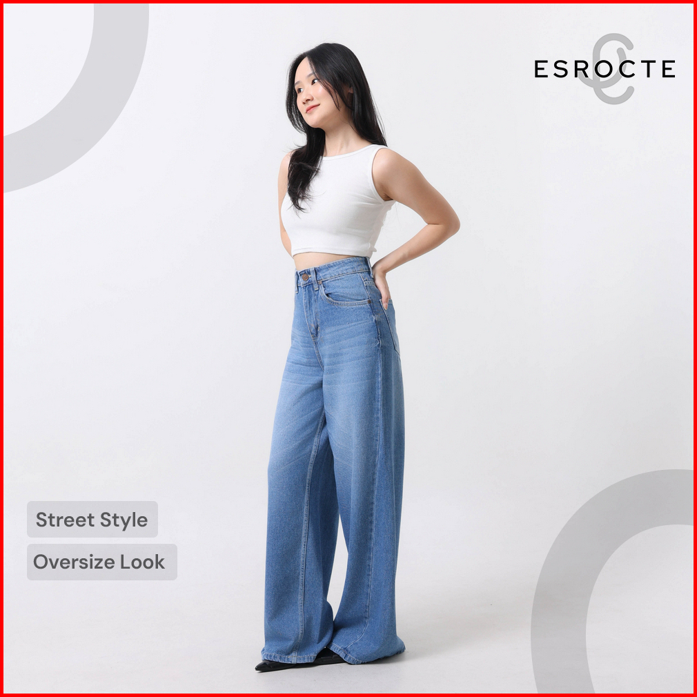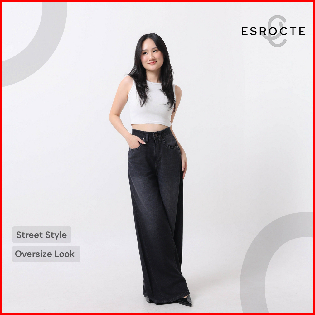 Esrocte Dayra Pants Celana Baggy Jeans High-waist Wanita Whisker Spray Edition S-xxl