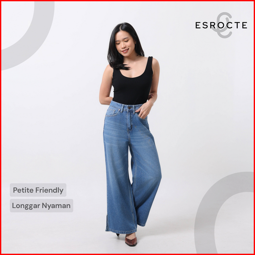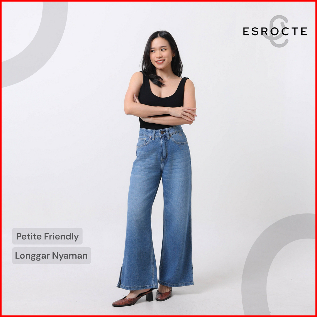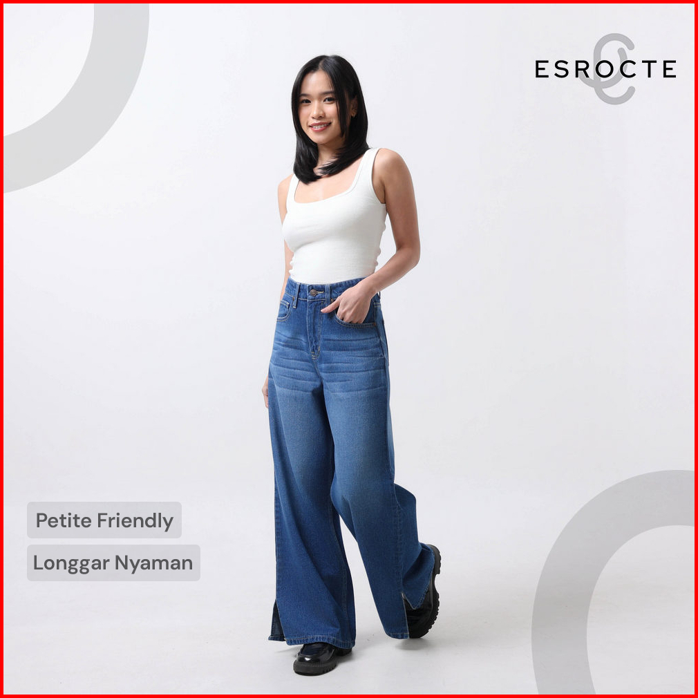 Esrocte Mayra Pants Celana Baggy Jeans Dengan Side Slit High-waist Wanita Warna Jeans S-xxl