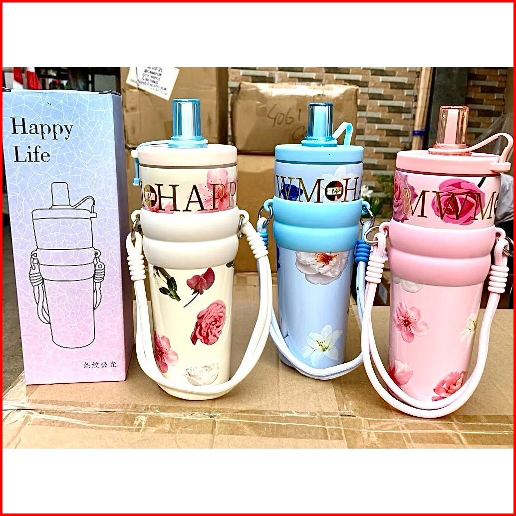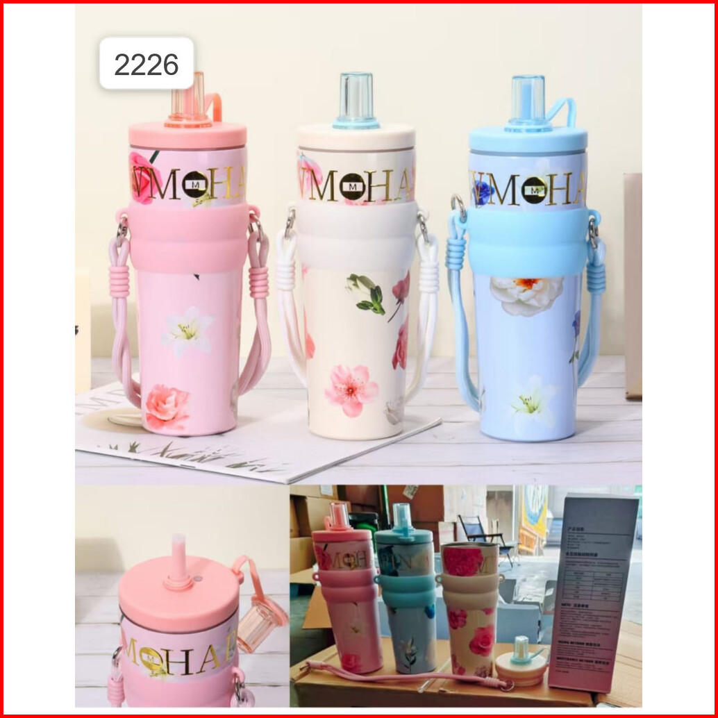 Sr Tumbler Floral 710ml Dengan Pegangan Karet Anti Slip Desain Elegan Feminim 2226