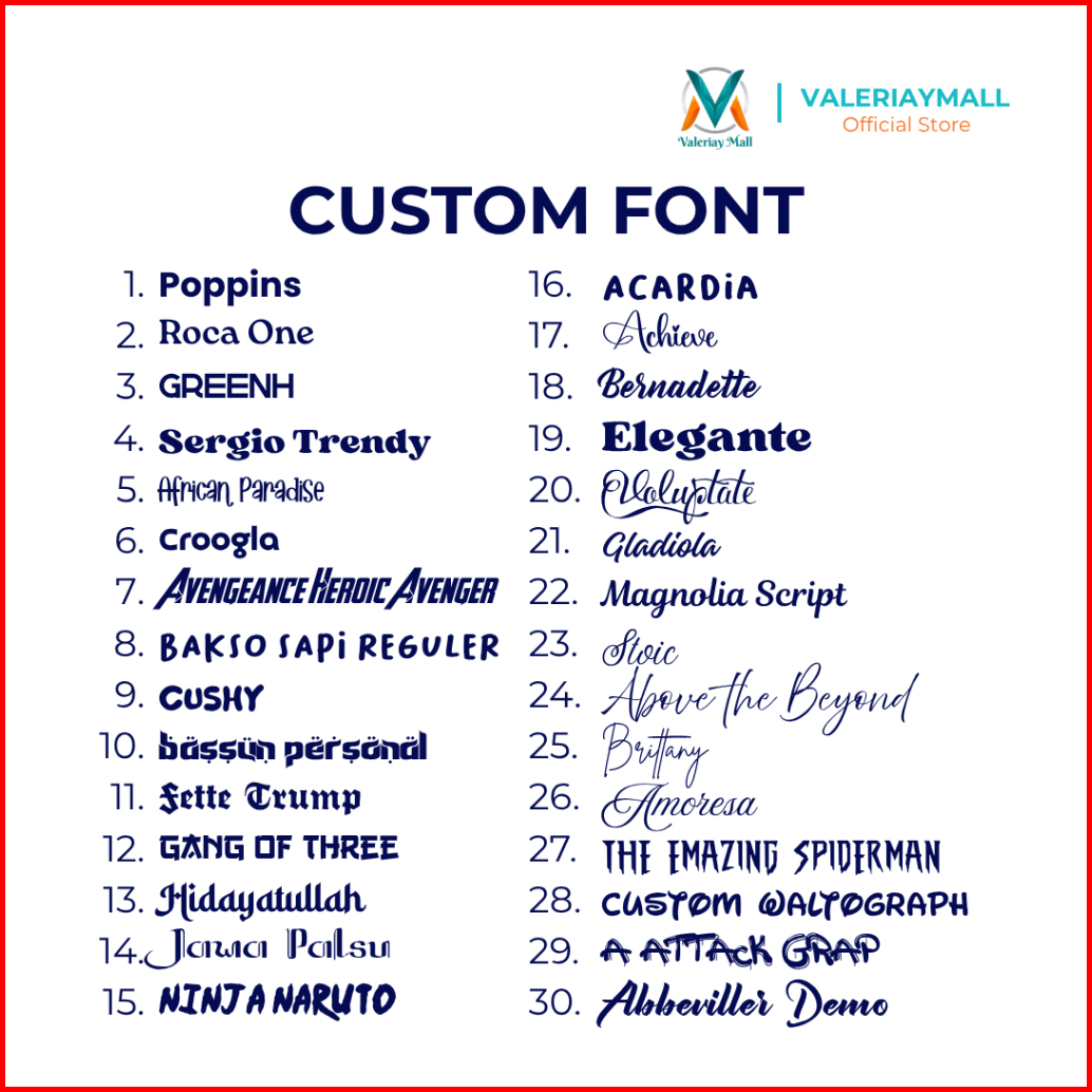 Hitam, Putih, Biru, Soft Biru, Sky Biru, Merah, Pink, Kuning, Oren, Hijau, Army, Tosca, Ungu, Abu-Abu, Silver