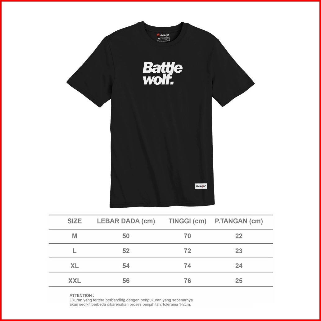 Battlewolf - Kaos Pria Hitam Mat Cotton Combed 24s