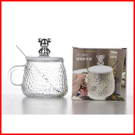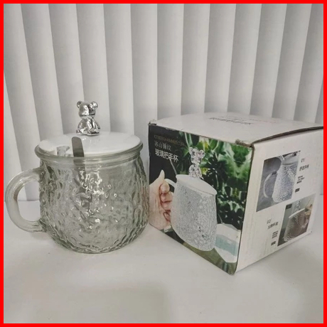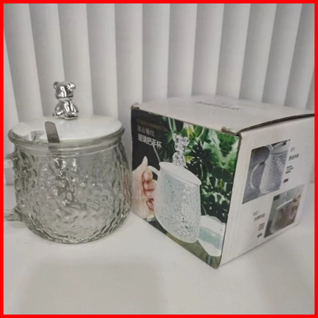 10 Pcs Gelas Cangkir Kaca Beruang Sendok 300ml Kemas Bok Pabrik