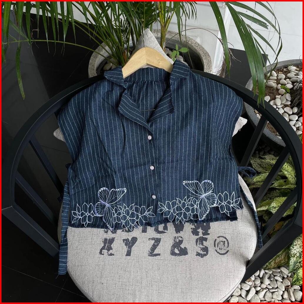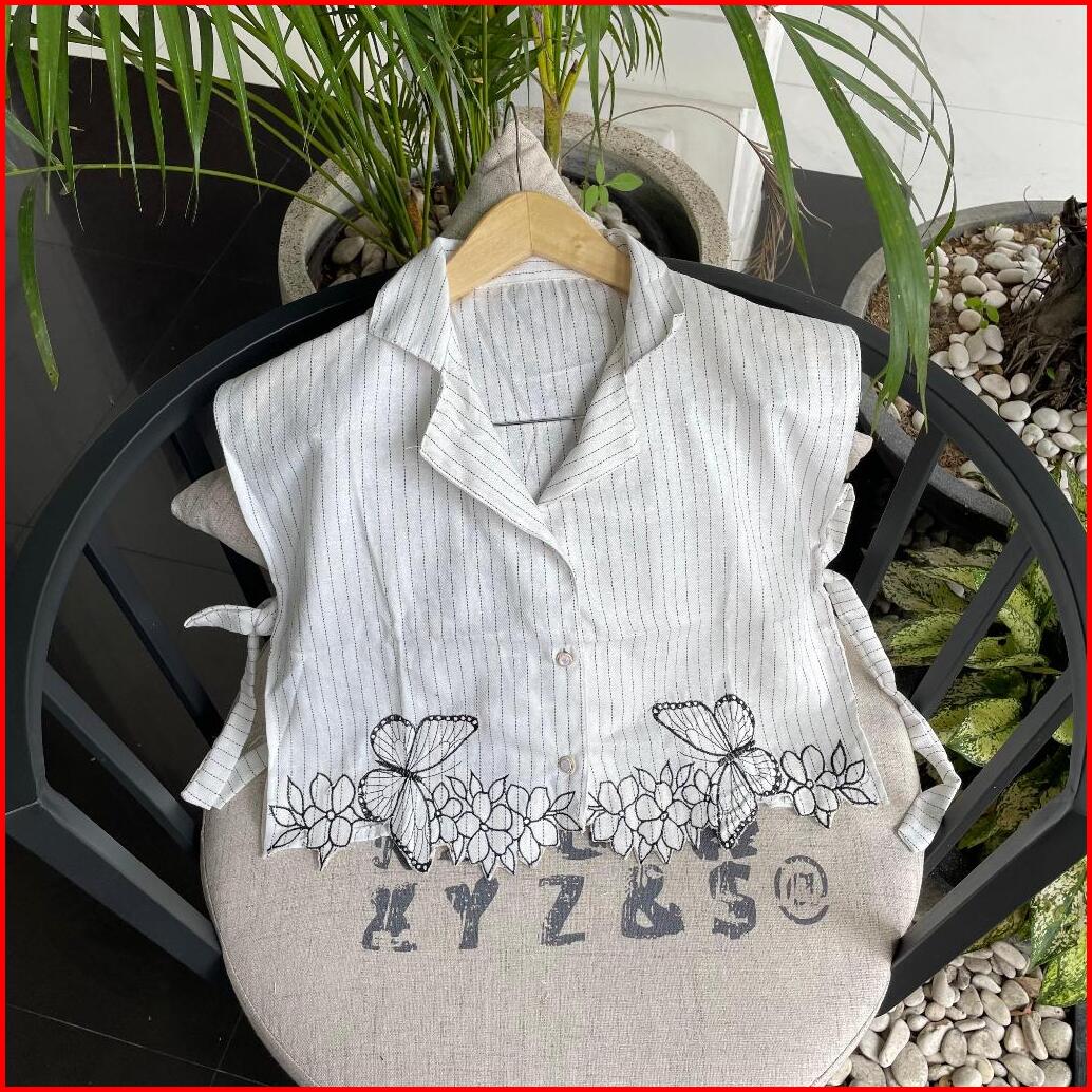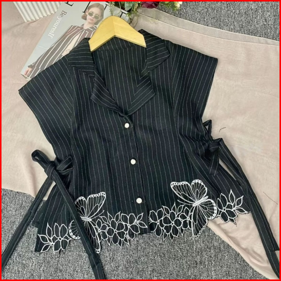 Mariposa Vest Wanita Semiwool Stripe Vest Bordir Tali Pinggang Outer Remaja Dewasa