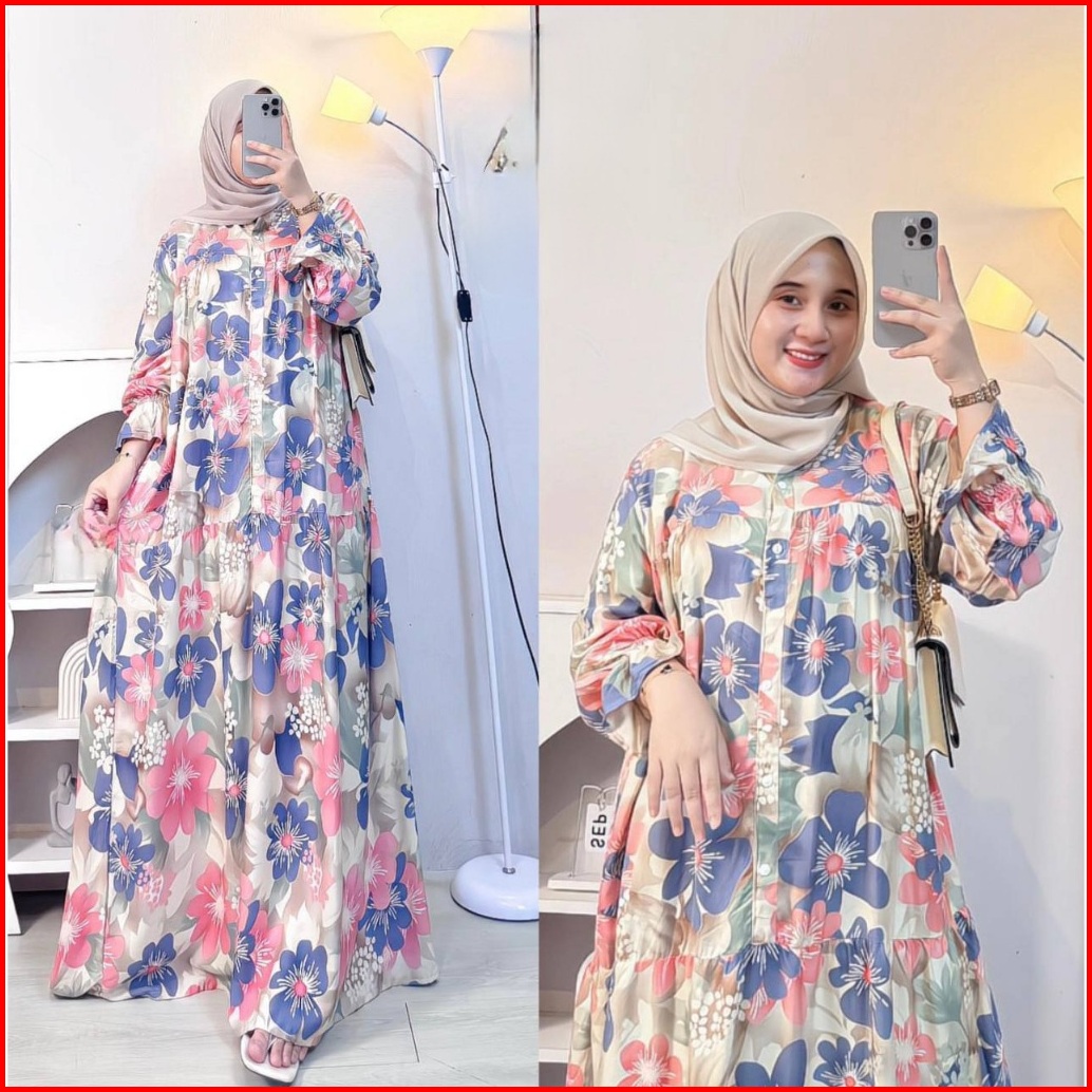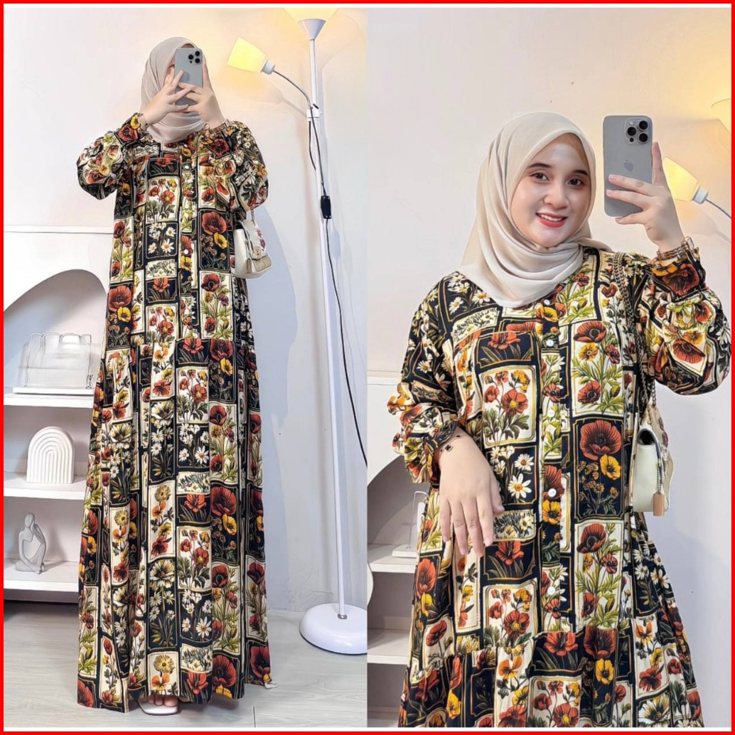Mfq Dewina Dress Wanita Rayon Motif Premium Busui Friendly Gamis Rayon Jumbo Bahan Adem Kain Dingin Motif Elegan Terbaru