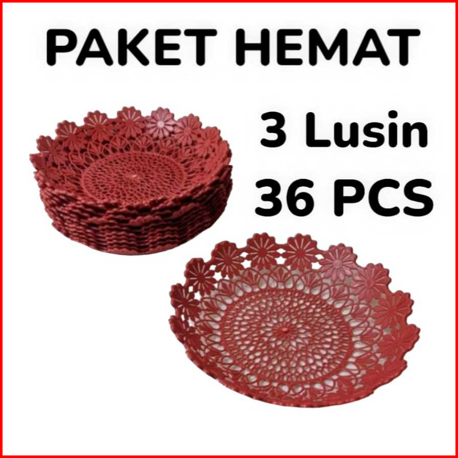 Paket Hemat 3 Lusin 36 Pcs Piring Rotan Bunga Tebal