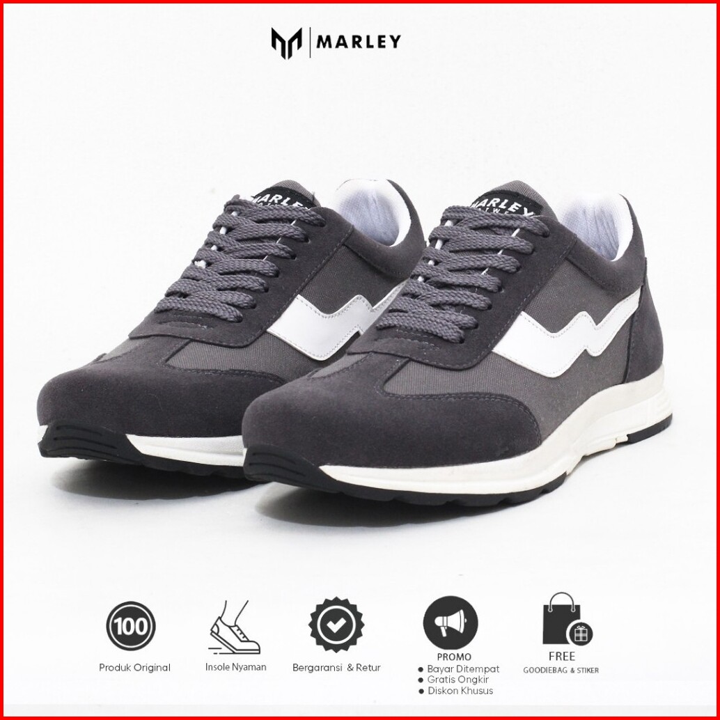 Marley Erland 03 - Marley Sepatu Sneakers Pria Kets Sporty Casual Hangout Warna Abu