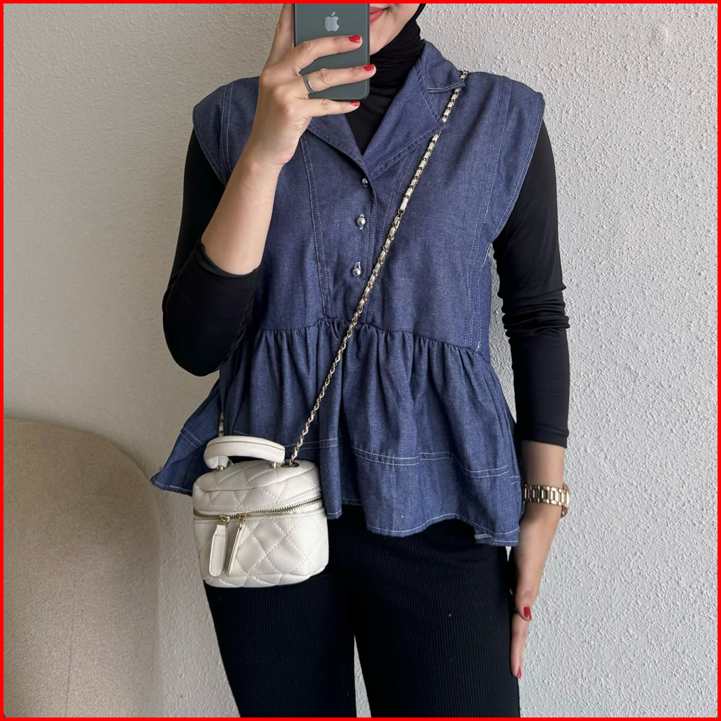 Floral Id - Vest Denim Wanita Tanpa Lengan Atasan Wanita