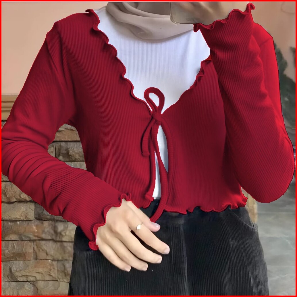Femes Cardigan Crop Tali Knit Atasan Wanita Matt Knit Premium All Size Fit To L Ootd Korean Style