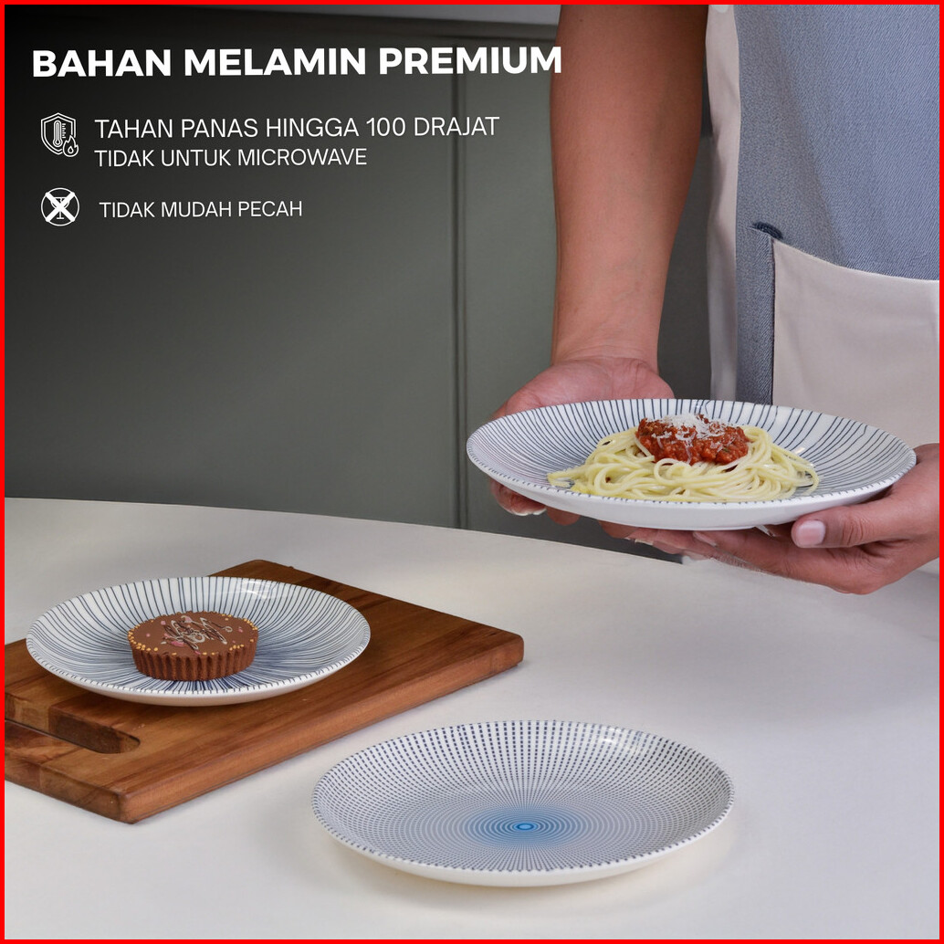 Piring Melamin Asli Motif Tidak Pudar 1 Lusin 12 Pcs Tebal Anti Pecah Saji Kue Piring Spageti
