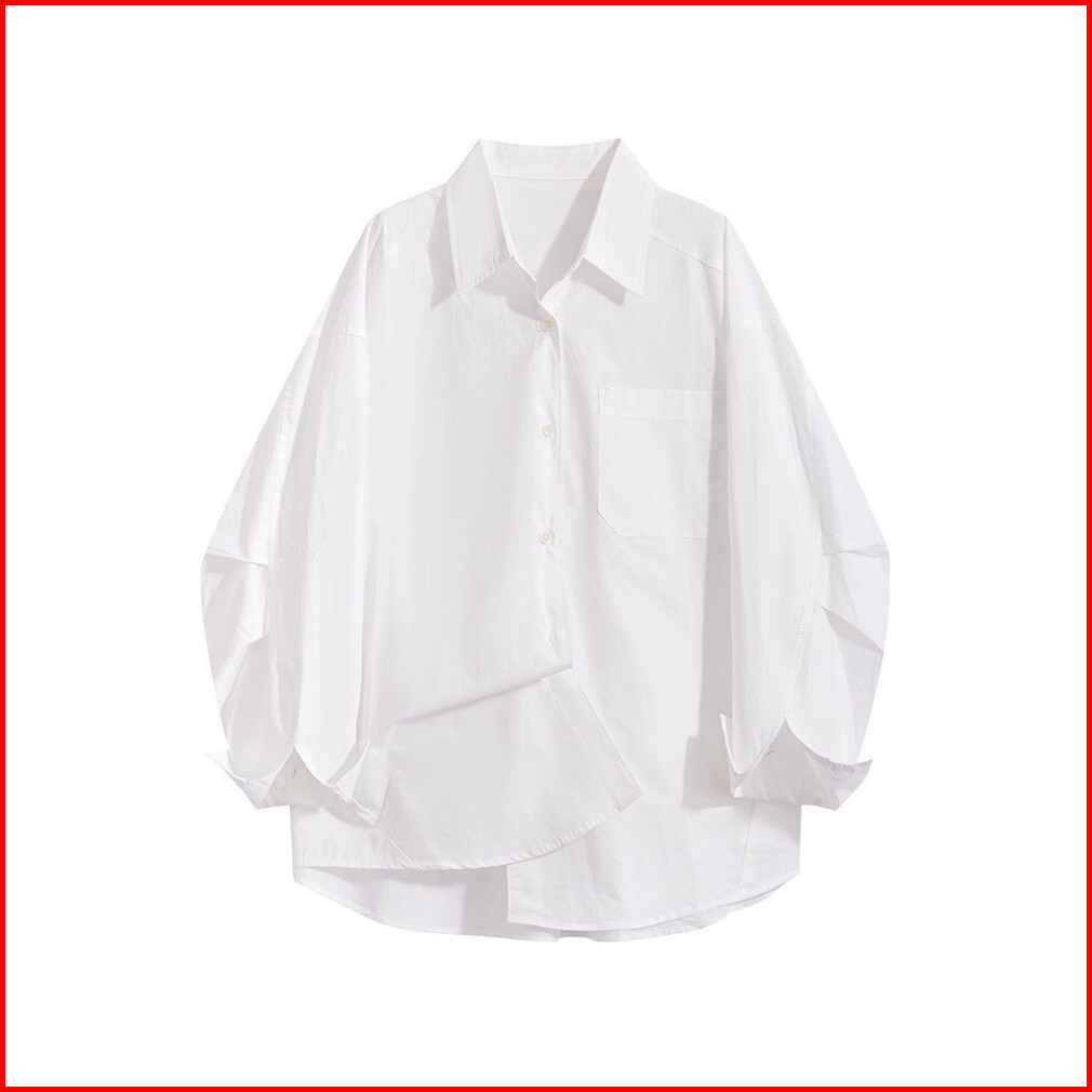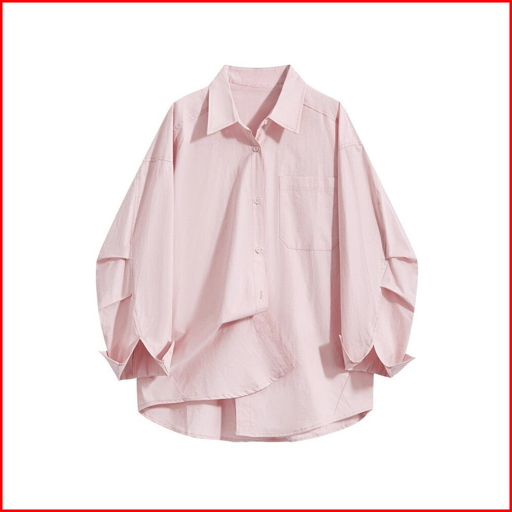 Ready Stock Kemeja Wanita Oversize Polos Dengan Potongan Kerah Klasik Dan Kantong Samping Atasan Lengan Panjang Kasual P
