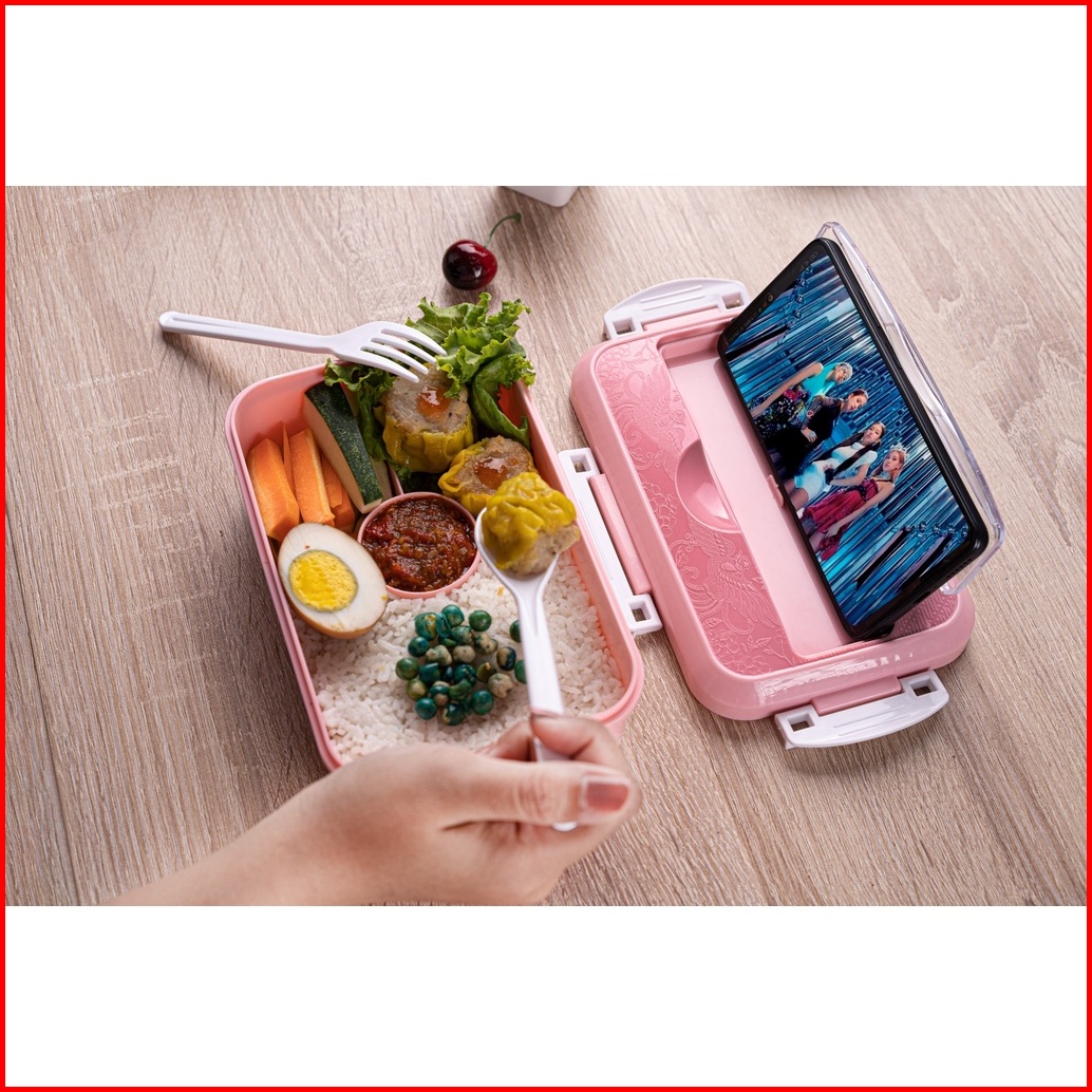Lunch Box Kotak Bekal Sekat 3 Grids Tempat Makan Dengan Sendok Dan Garpu Wadah Makanan Rekreasi