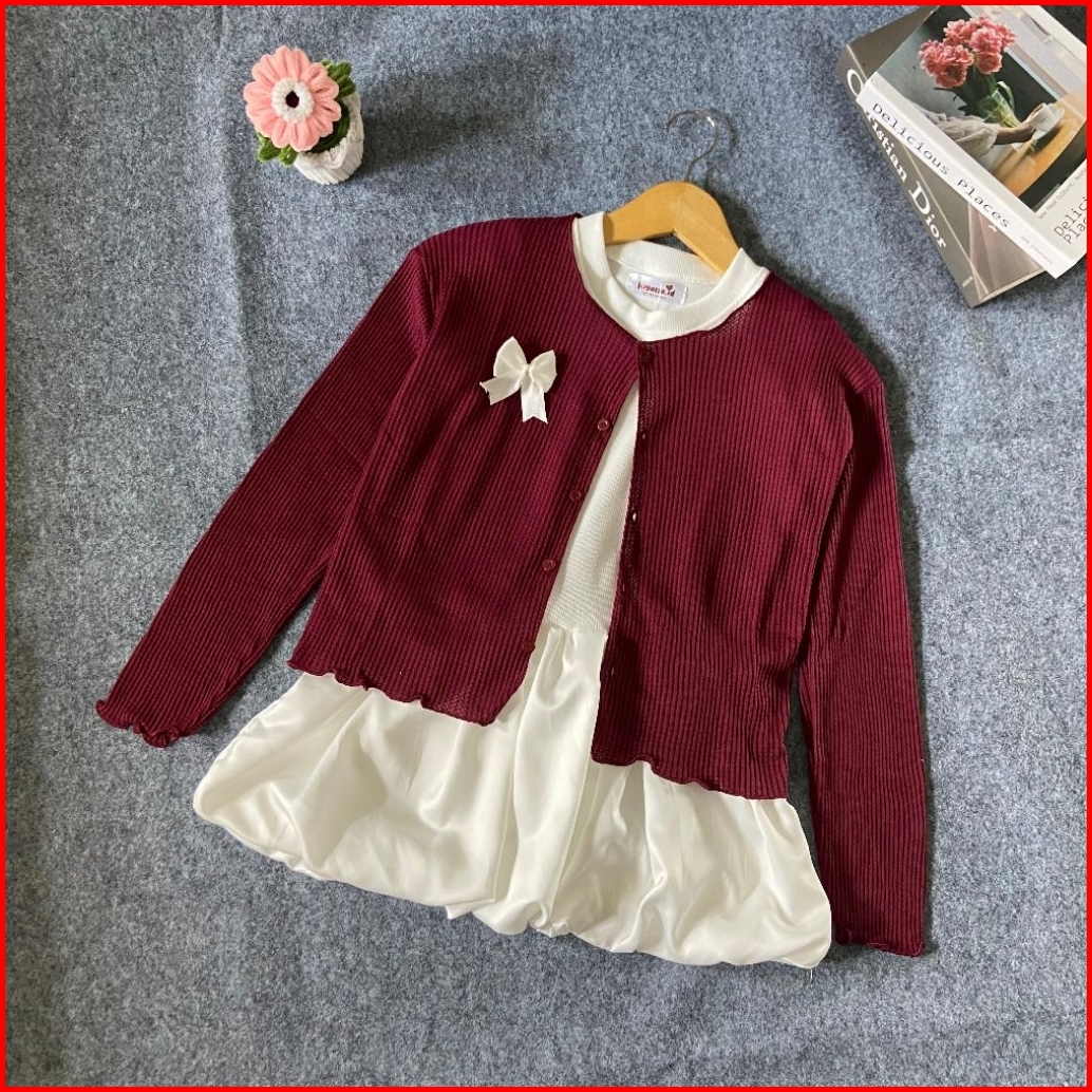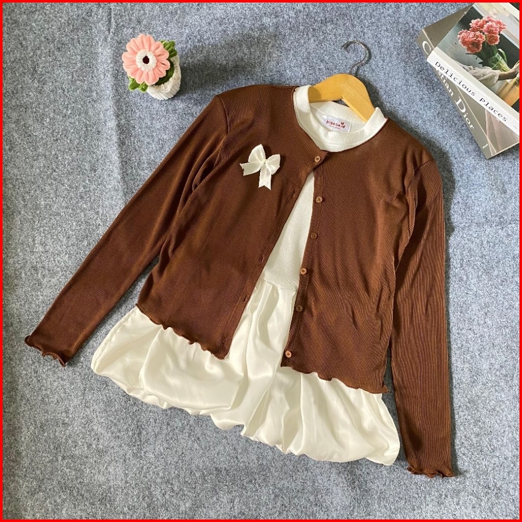 Setelan Coquette Cardigan Inner Balon Rajut Minimalis