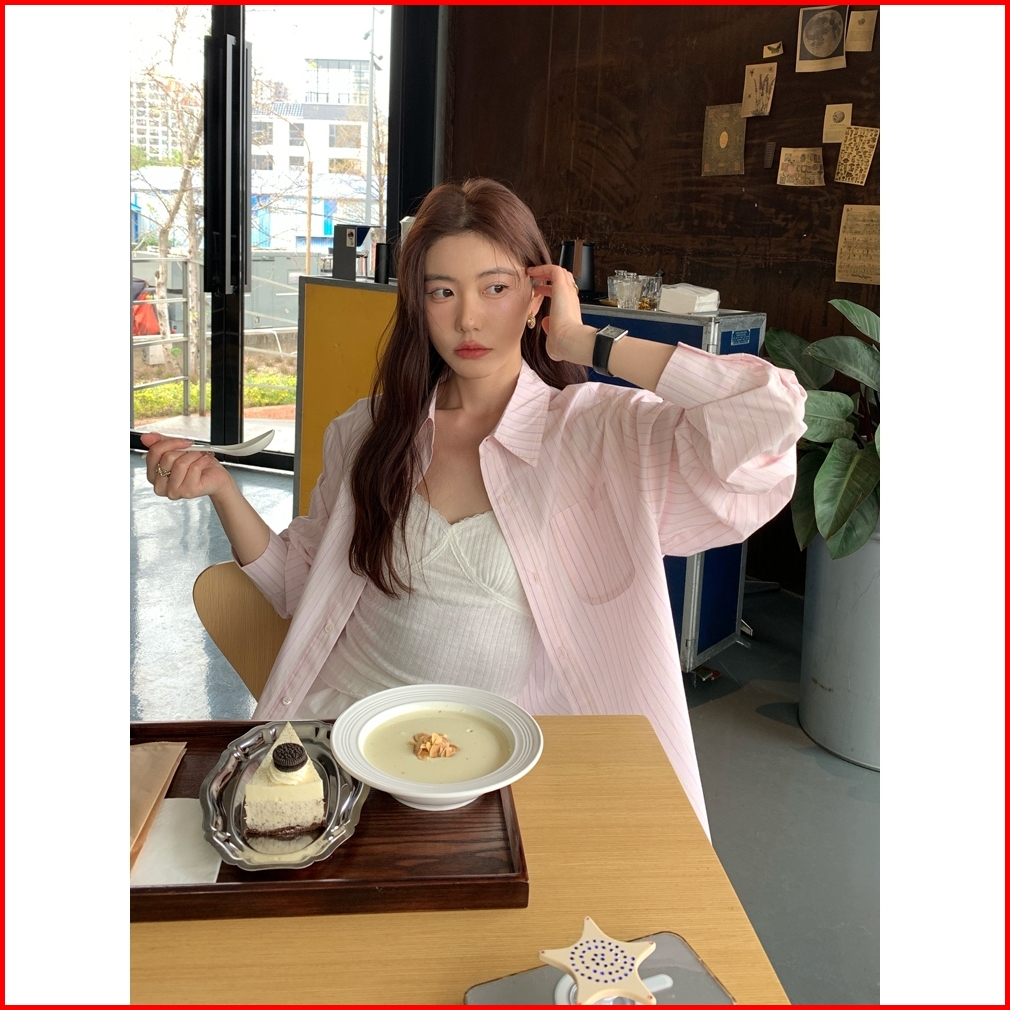 2toyoung Kemeja Fitted Fitted Shirt Kemeja Kerja Wanita Kemeja Lengan Panjang Kemeja Katun Wanita Merah Muda Stripe Baju
