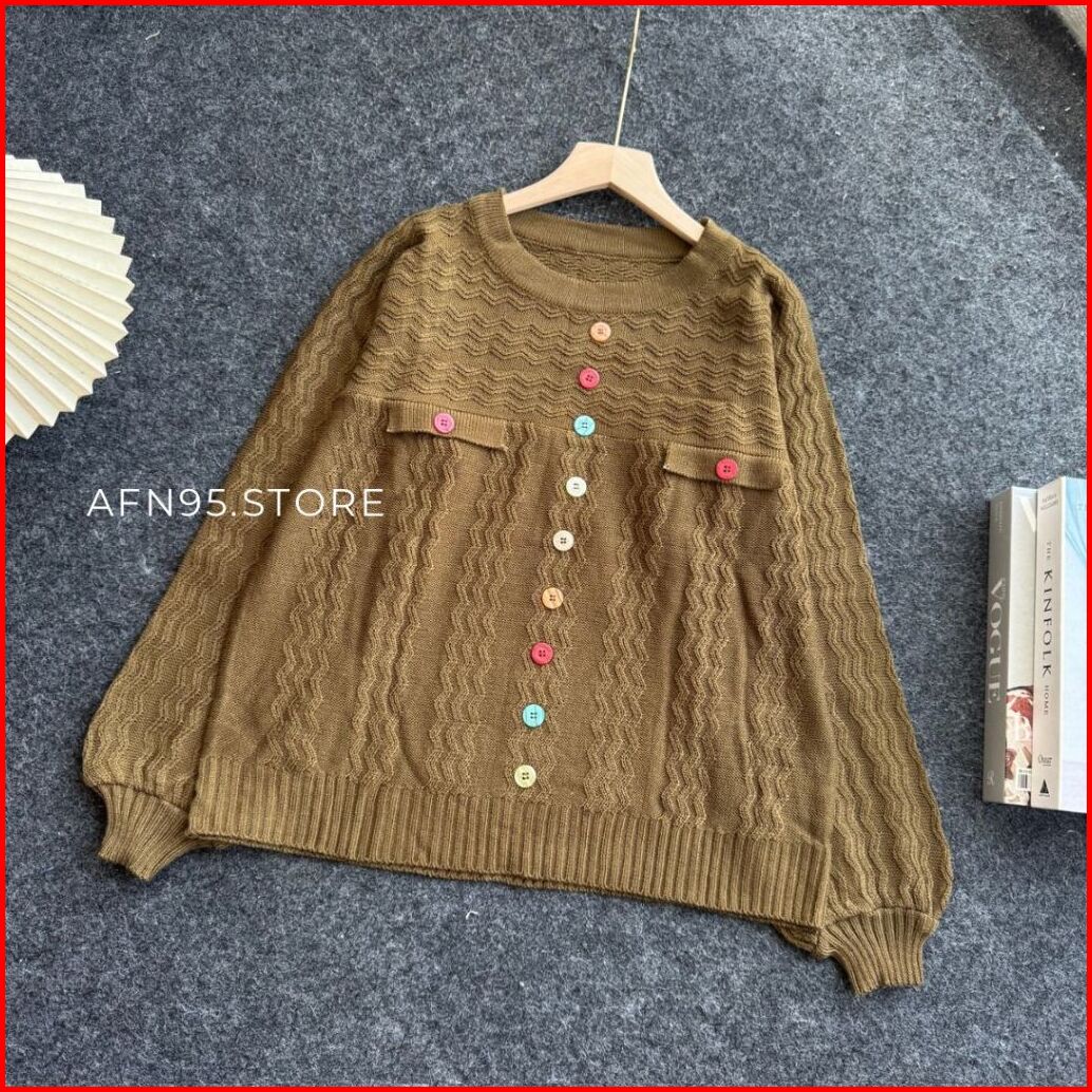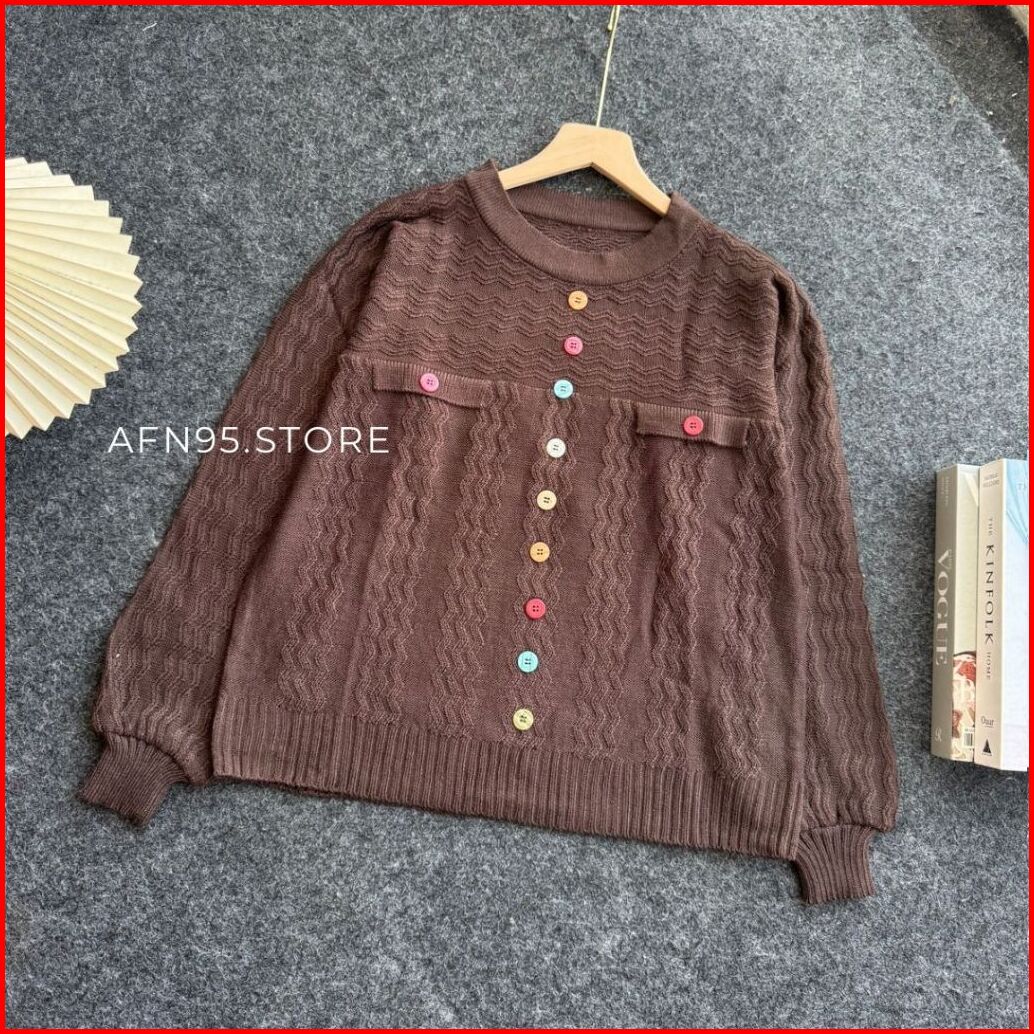 Cardigan Princess - Atasan Blous Rajut Wanita Lengan Balon Kancing Pelangi Oversize