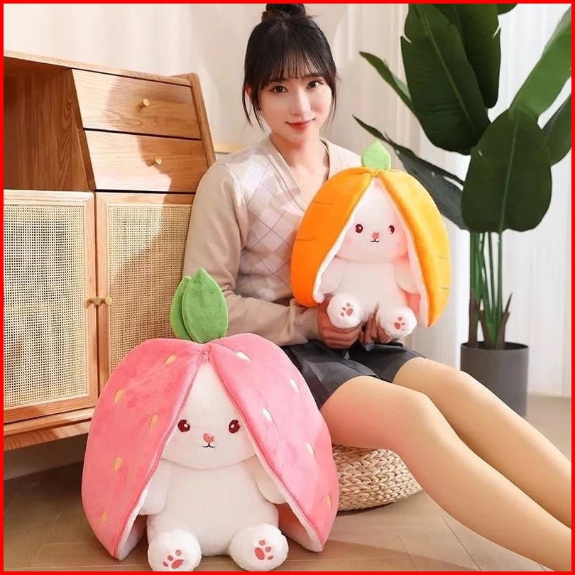 Boneka Kelinci Strawberry Wortel Flip Resesible Ukuran 30cm Bahan Halus