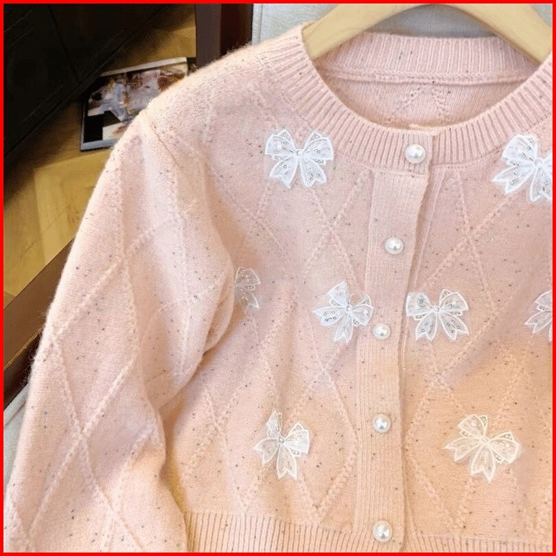 Monica Cardigan Wol Rajut Girly Pita Atasan Wanita Simple Imut Knitwear Daily