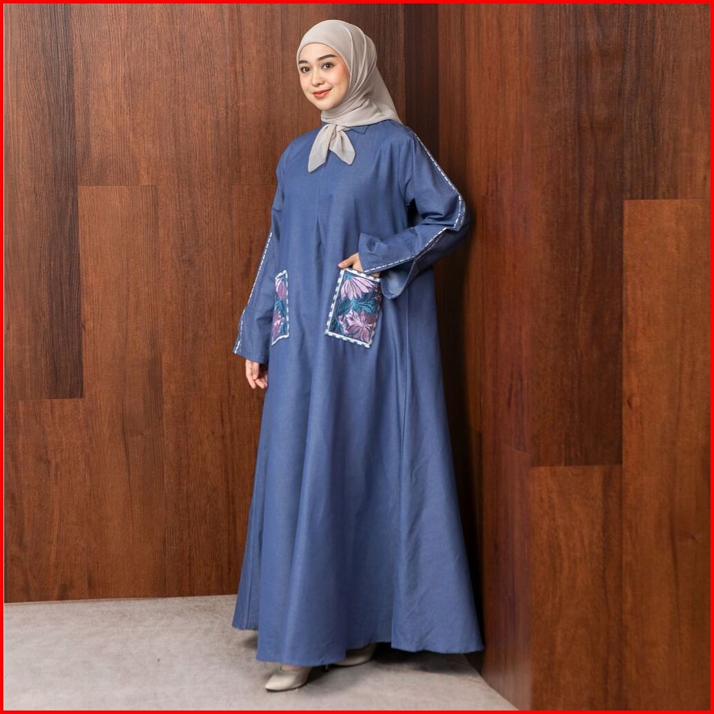 Lozy Hijab - Irish Dress Denim Abaya Dress Flower Embroidery Bahan Denim