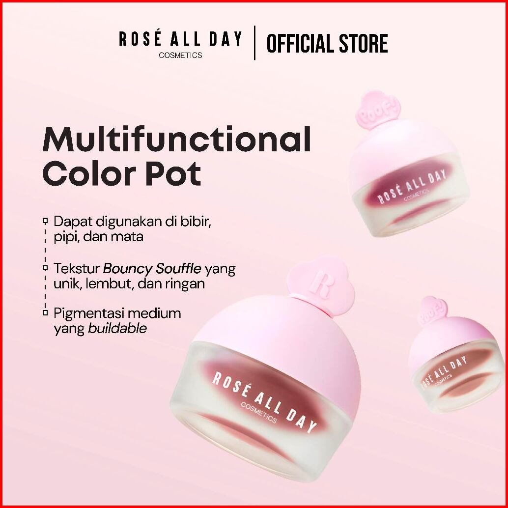 Rose All Day Poof Blurring Pot - Lip Cream Blush Eyeshadow Matte Natural Melembapkan Menyamarkan Garis Halus
