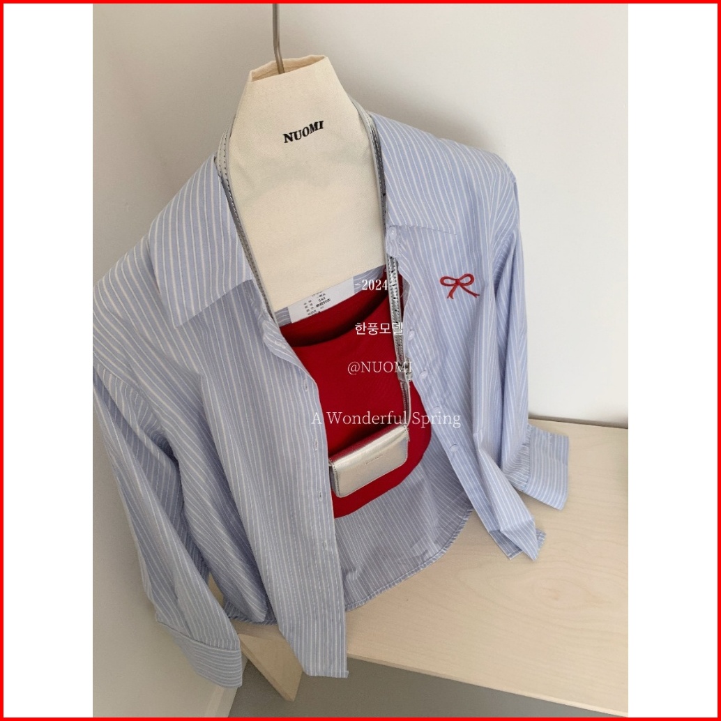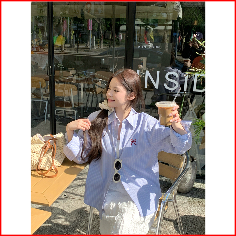 The Monseur Gallery Kemeja Biru Gaya Korea Kemeja Longgar Dengan Pita Atasan Kerah Wanita