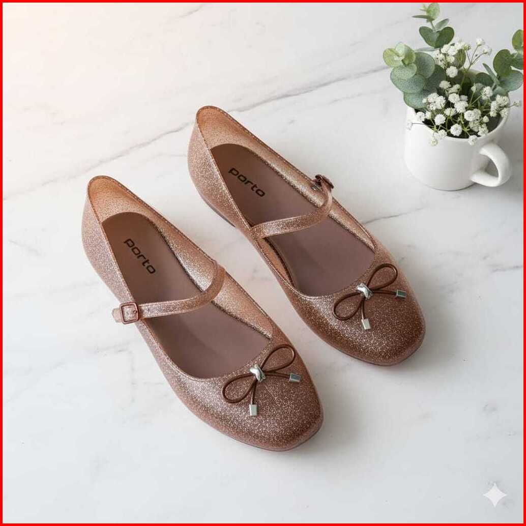 Porto Milly Glitter Flat Shoes Sepatu Wanita Anti Slip Super Nyaman Sepatu Kerja Sepatu Kampus