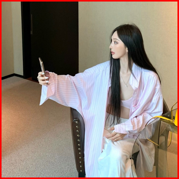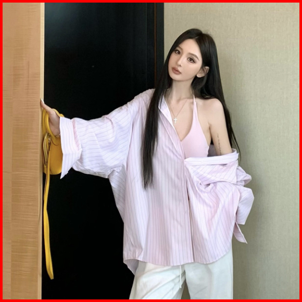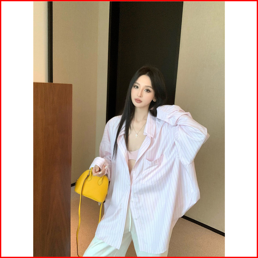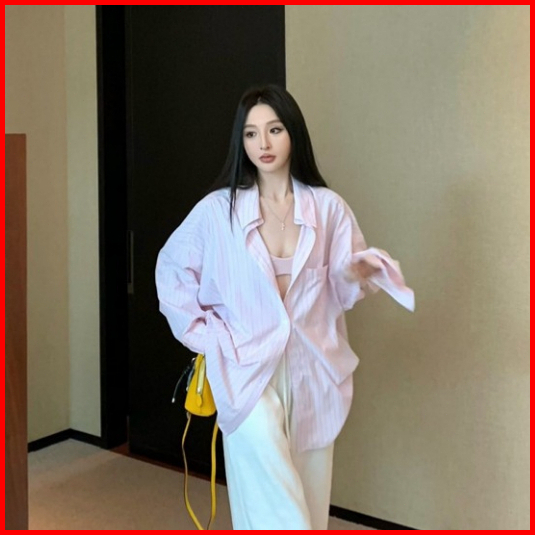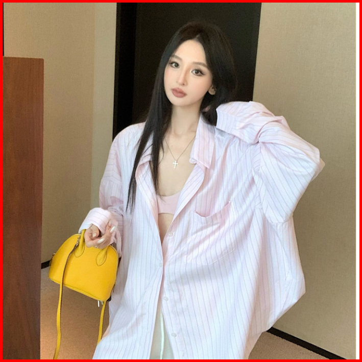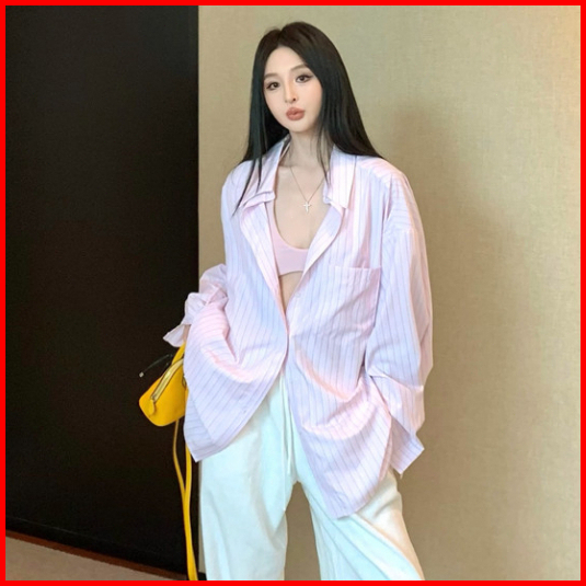 2toyoung Kemeja Fitted Fitted Shirt Kemeja Kerja Wanita Kemeja Lengan Panjang Kemeja Katun Wanita Merah Muda Stripe Baju