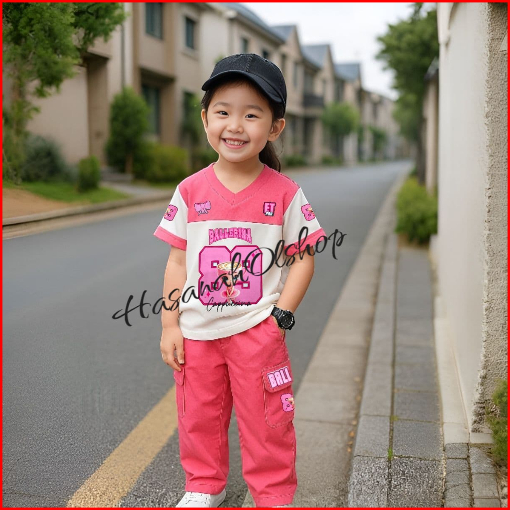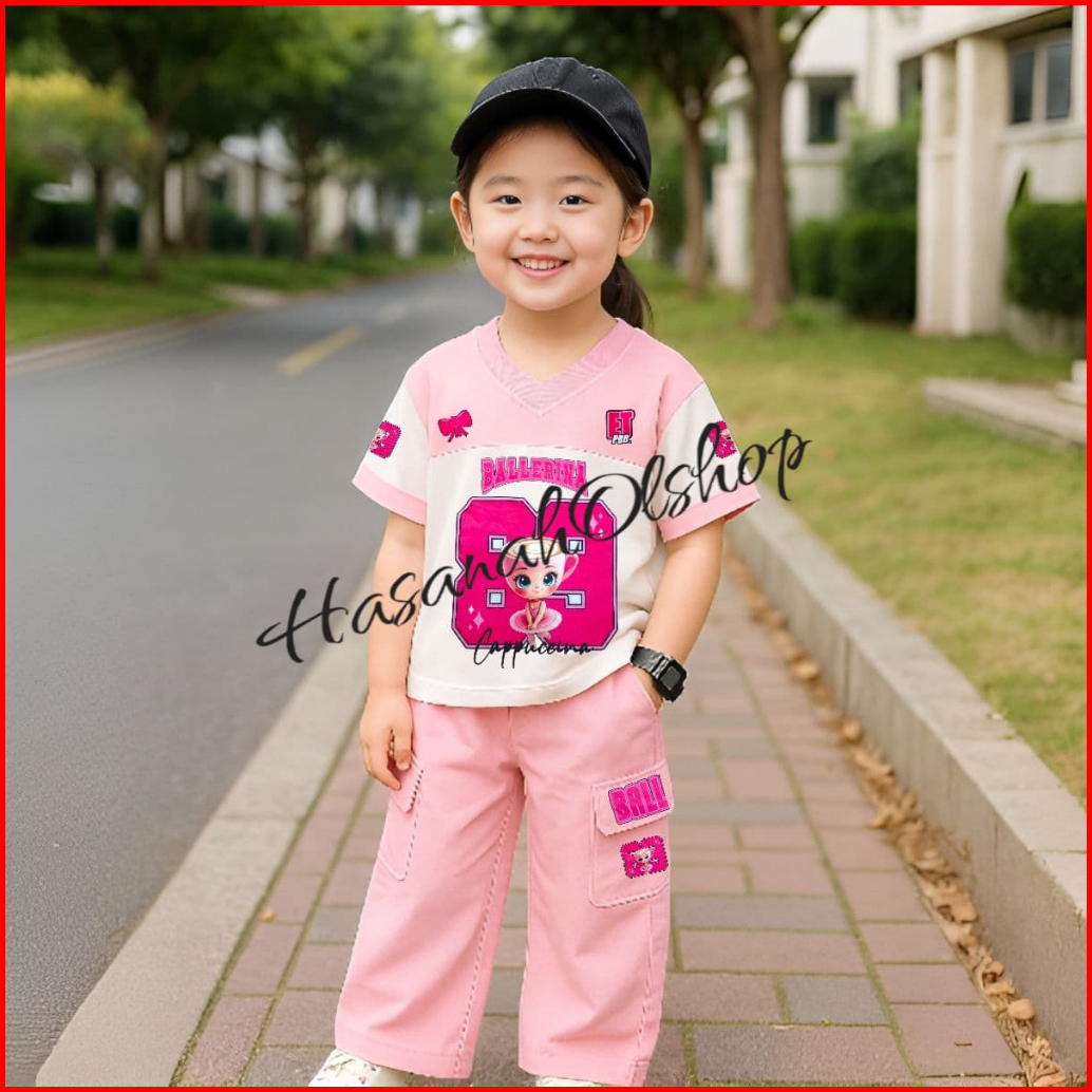 Setelan Baju Anak Perempuan Anomali Ballerina Cappuccina Celana Panjang Cargo Usia 3-12 Tahun