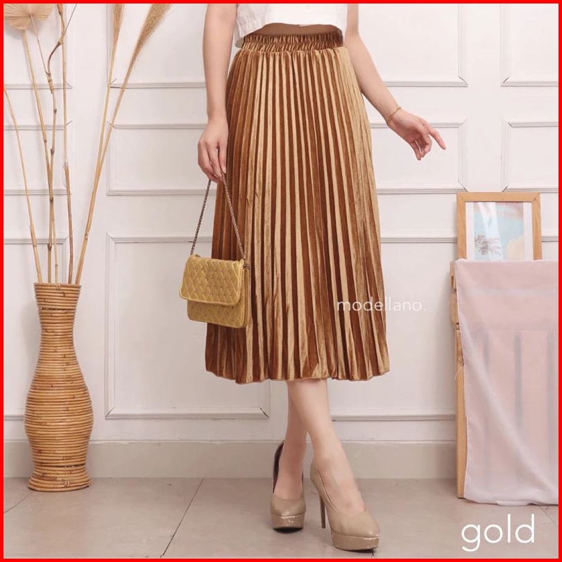 Rok Bludru Plisket Velvet Rok Mayung Premium Rok Beludru 7 8 Rok Midi Bludru Rok Beludru Premium