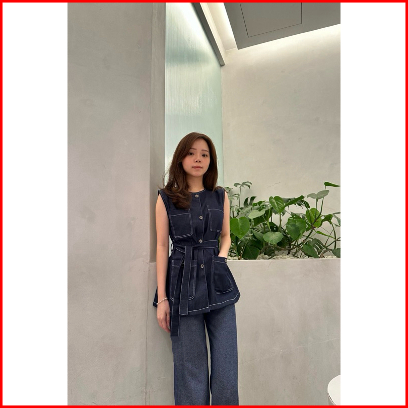 Modenica - Mave Denim Top Atasan Wanita Kekinian Atasan Kerja Wanita Blouse Wanita Hitam Vest Denim Baju Denim Wanita De