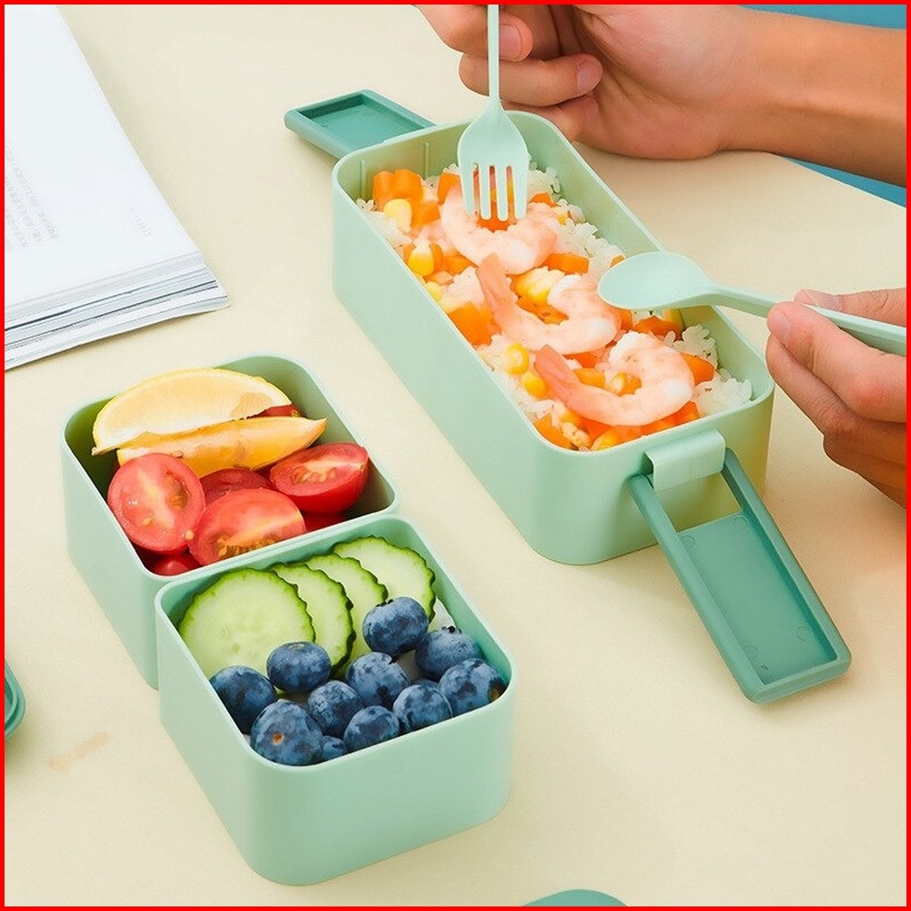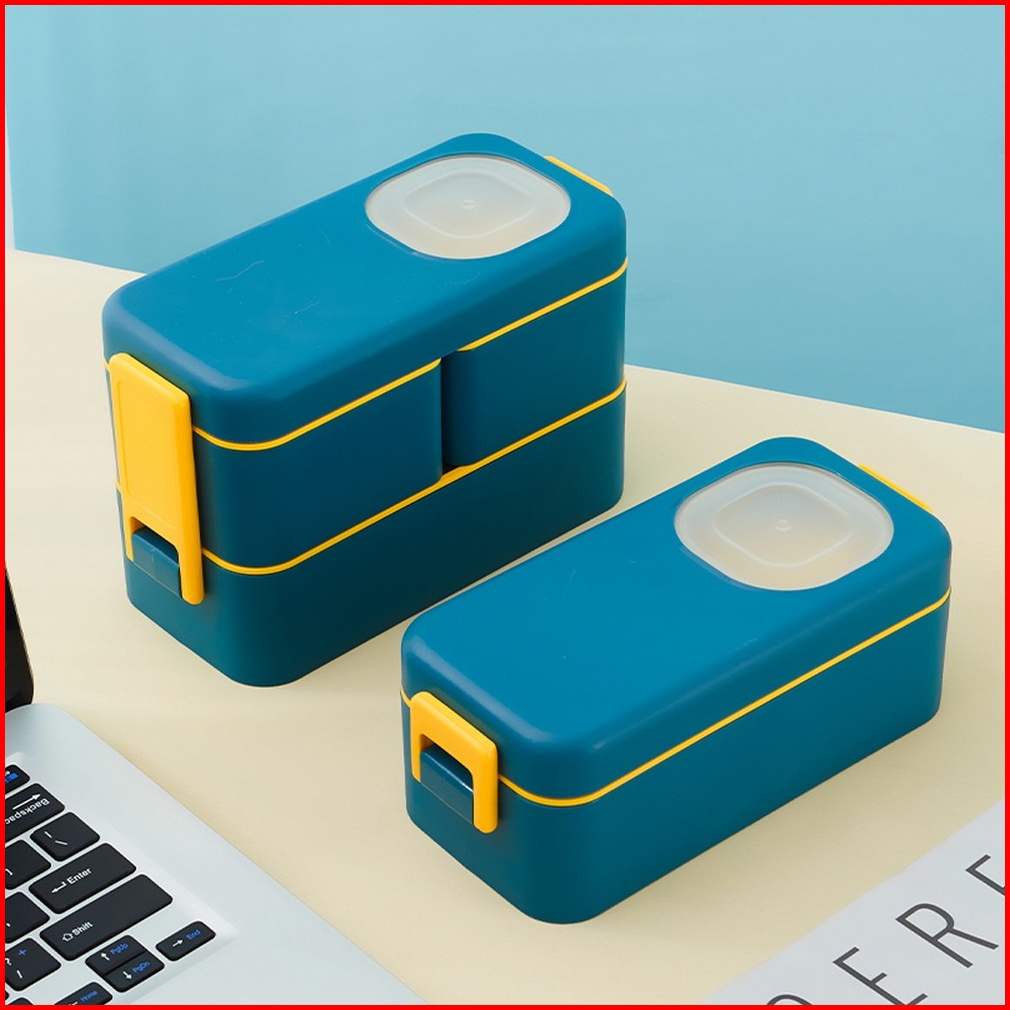 Kotak Makan 2 Tingkat Portable 1050ml Ada Sauce Cup Lunch Box 2 Layer Rantang Makanan Set Anti Tumpah Stockami C779