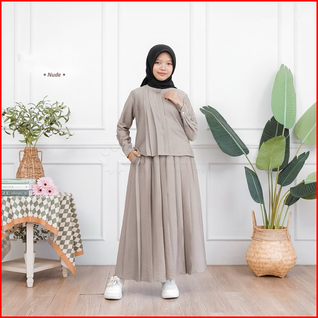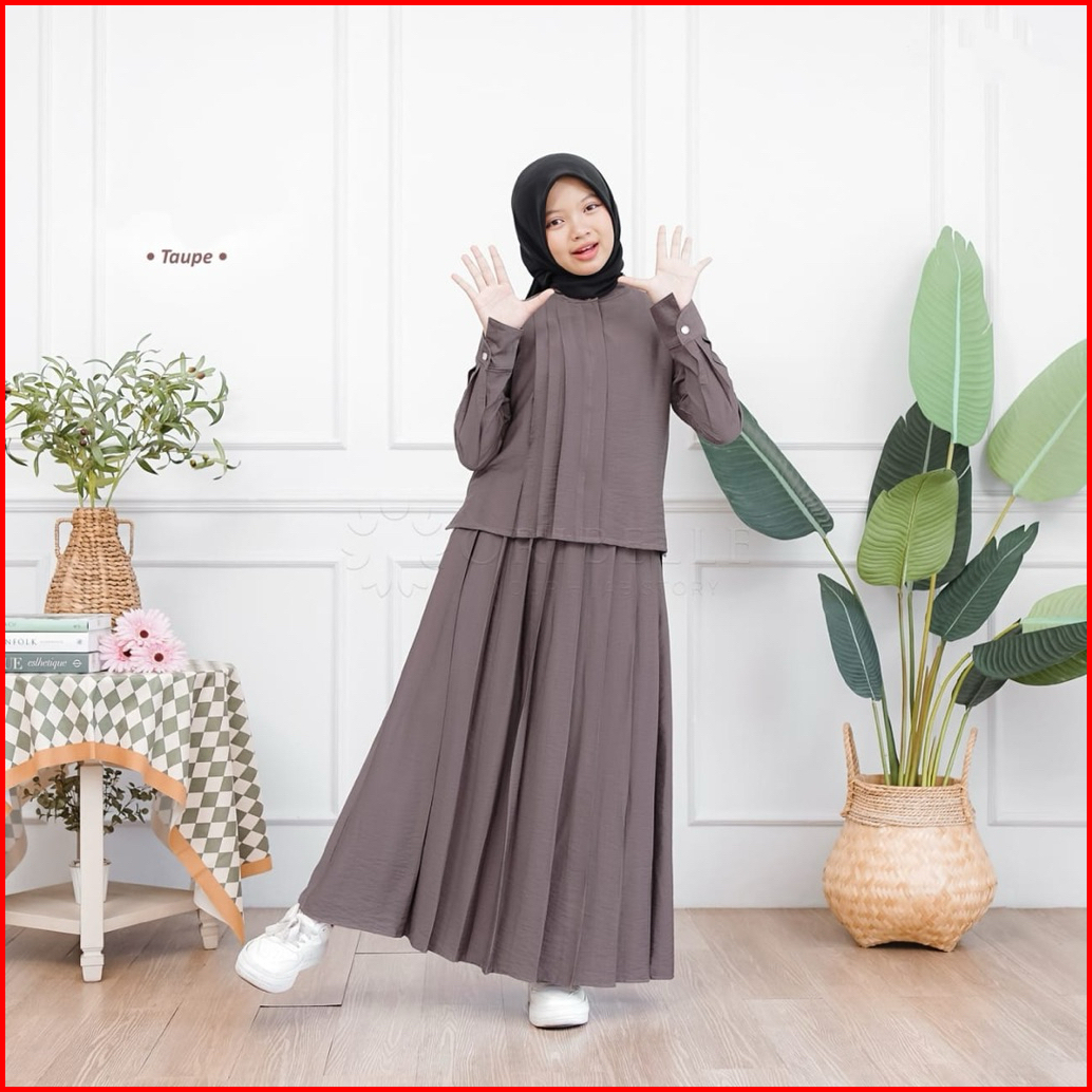Setelan Muslim Anak Perempuan Hijab Kekinian 2 In 1 Francine Kids Usia 8-15 Tahun Bahan Linen Crinkle Gamis Anak Tanggun