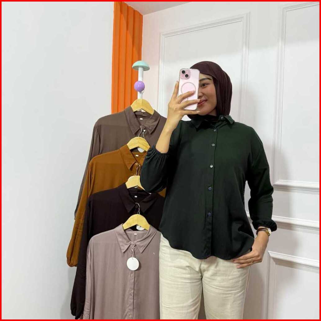 Zk-01 Kemeja Wanita Oversize Polos Rayon Twill Premium Basic Lengan Panjang Kemeja Kantoran