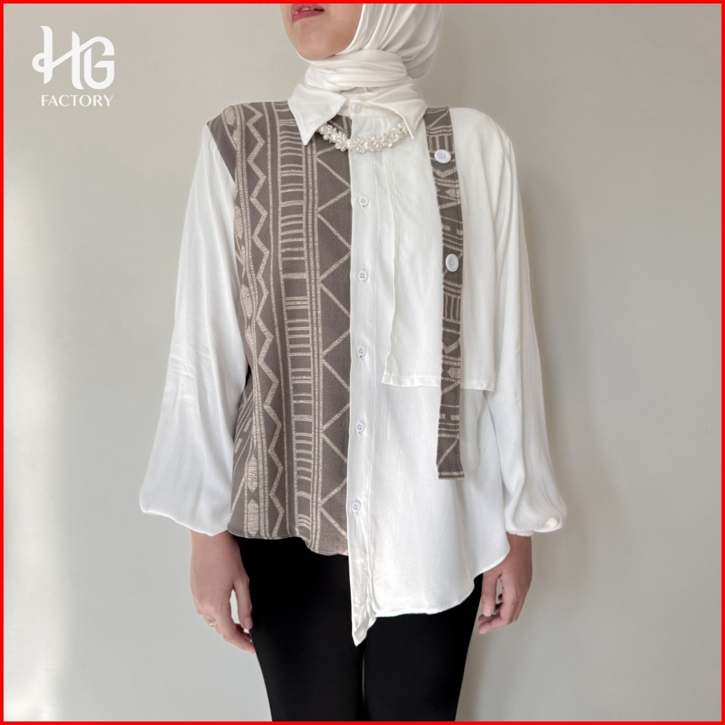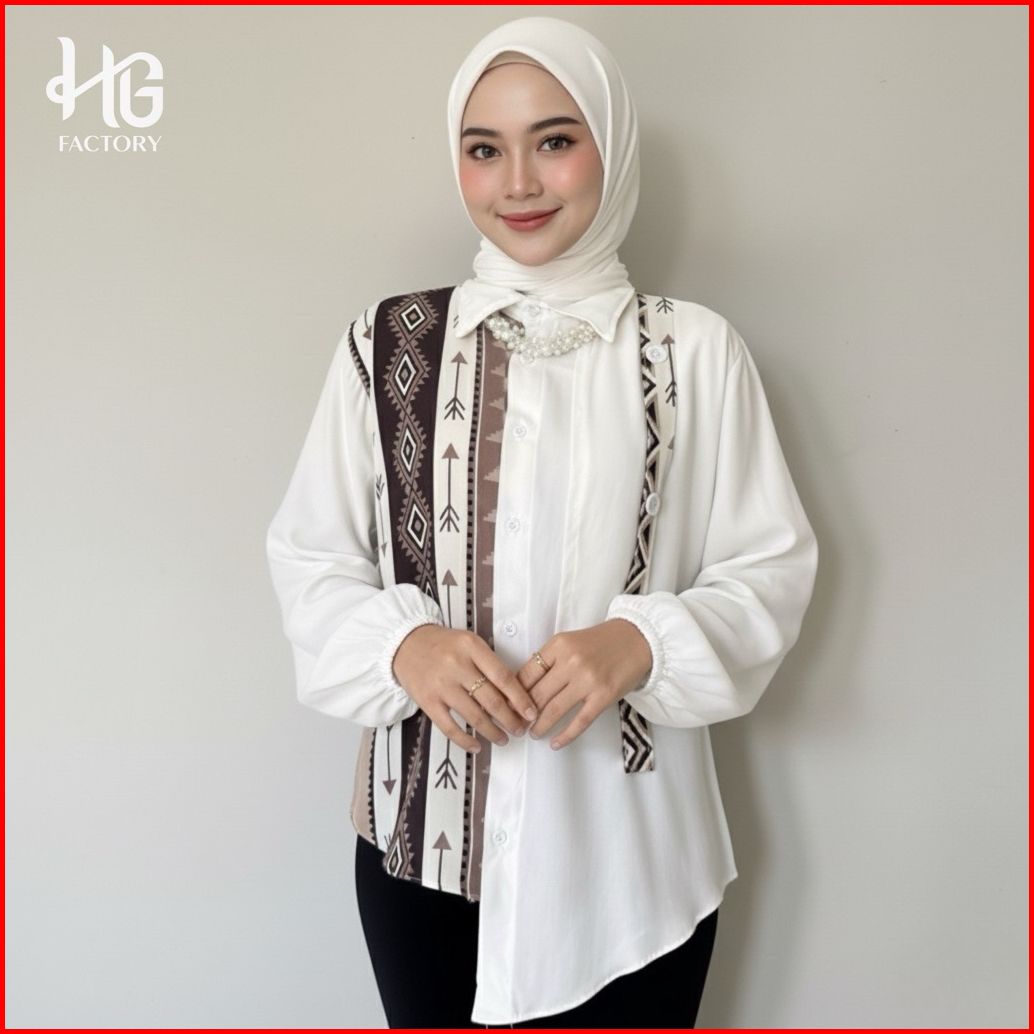 Valery Kemeja - Kemeja Rayon Twill Kemeja Korea Kemeja Motif Wanita