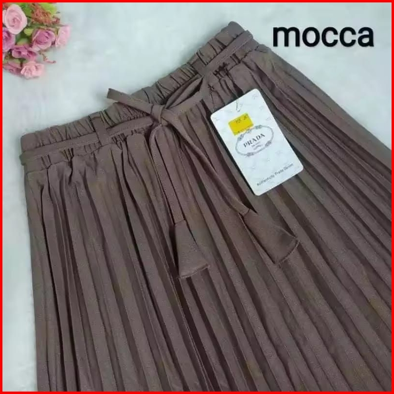 Rok Plisket Premium Prada Tali Lonceng Bahan Kashibo