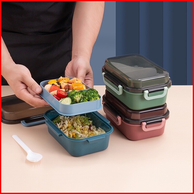 Eatkit Kotak Makan Siang Transparan 1250ml Desain Dua Lapis Lunch Box Untuk Pekerja Kantor Dan Pelajar Pemanas Microwave