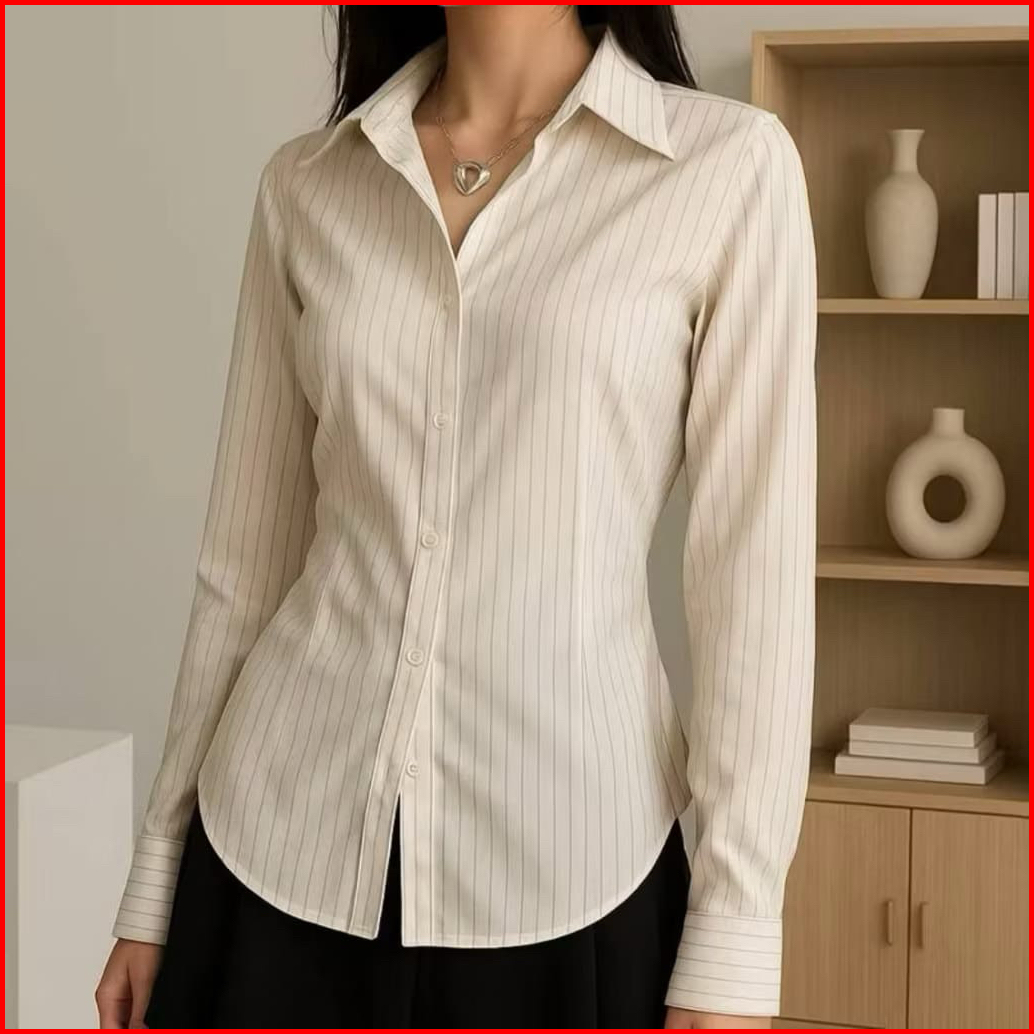 Luna Stripe Kemeja Wanita - Kemeja Wanita Fitted Atasan Wanita Stripe Salur Basic Casual