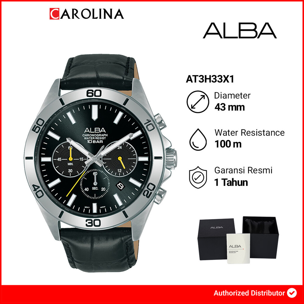 Jam Tangan Pria Alba Active At3h33x1 Black Dial And Leather Strap