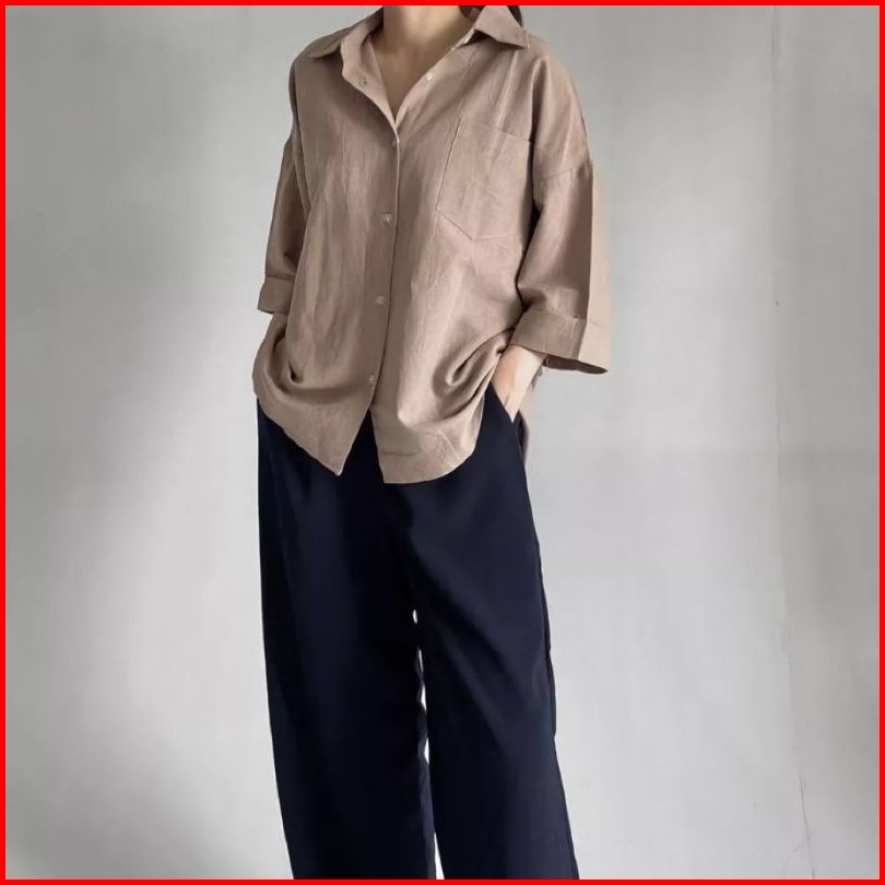 Aurora Kemeja Linen Single Pocket - Oversized Shirt Linen - Atasan Wanita - Kemeja Lengan 3 4