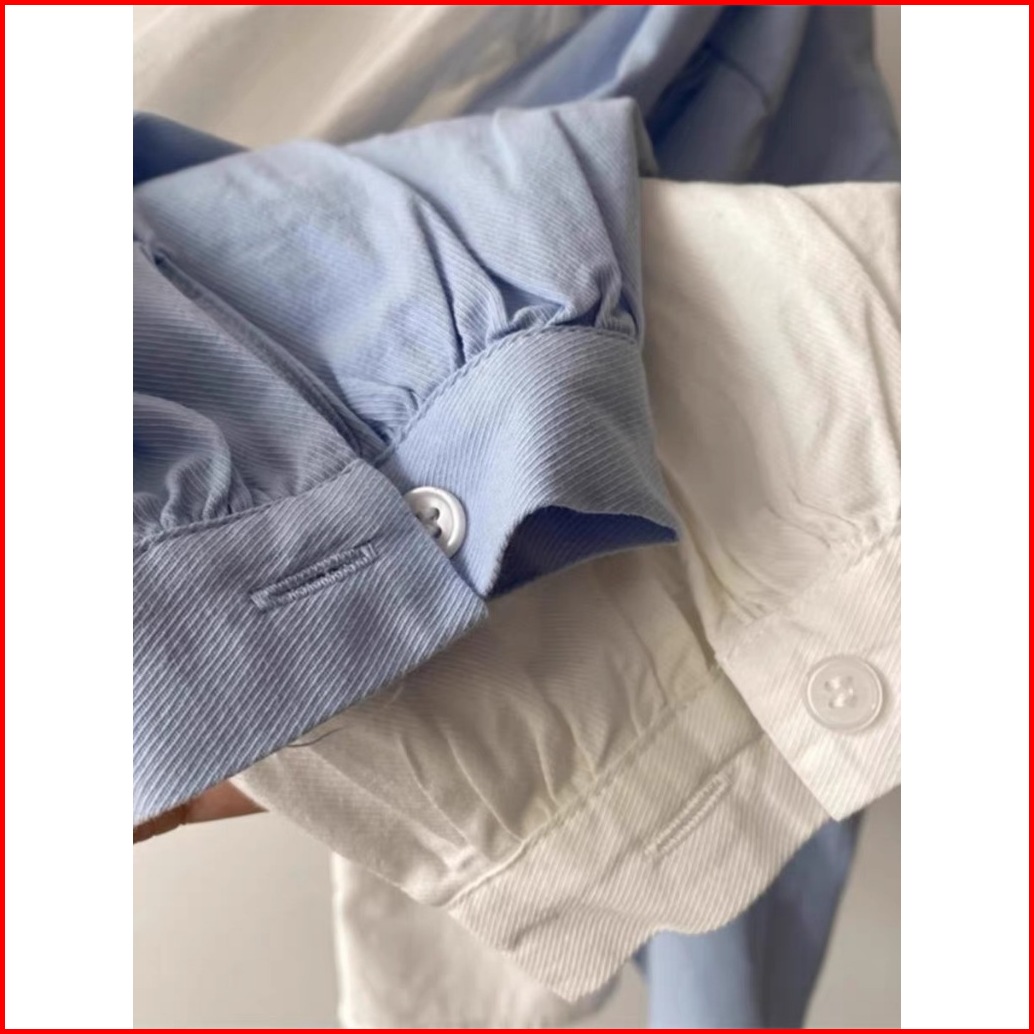 The Monseur Gallery Kemeja Lengan Panjang Retro Wanita Kerah Berdiri Kecil Lengan Lentera Biru Gaya Korea Baru
