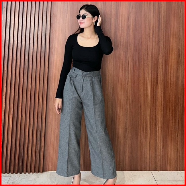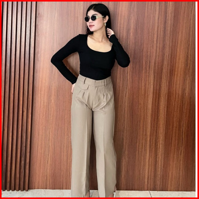 Nv Brand - Celana Kulot Oro Highwaist Loose Anti Kusut Kerja - Nyaman Dan Panjang Casual Dengan Karet Pinggang - Kaki St