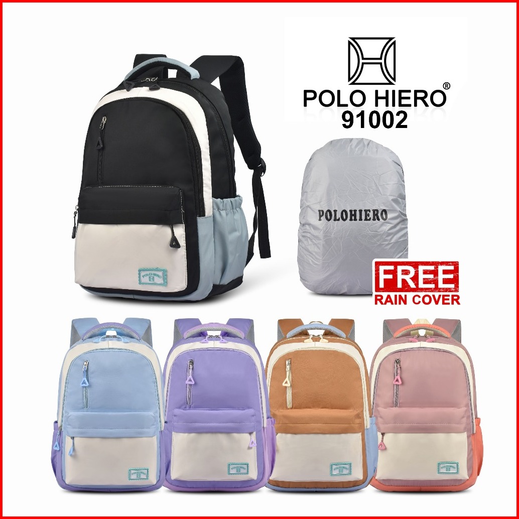 Cph Tas Laptop Polo Hiero 91002 Tas Ransel Sekolah Wanita Tas Travelling Perempuan Free Rain Cover