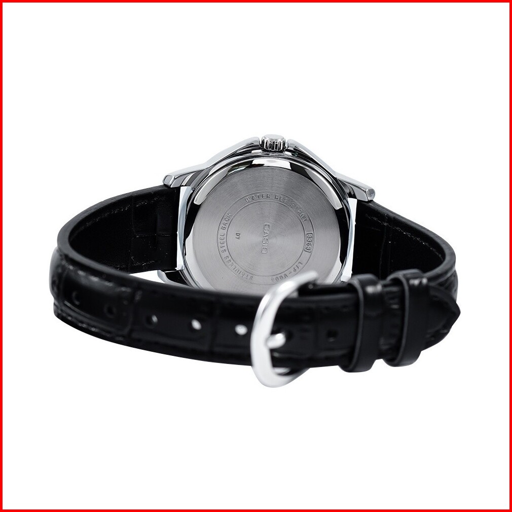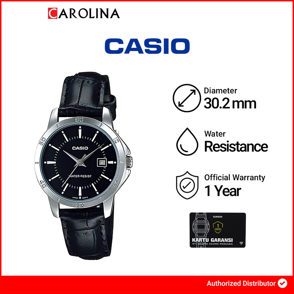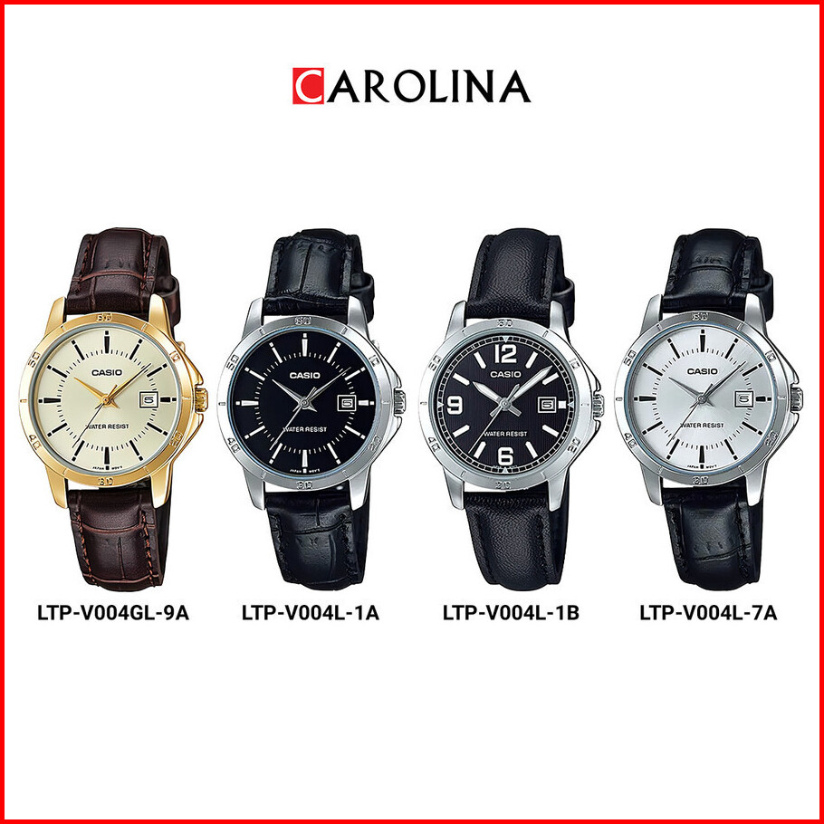 Jam Tangan Wanita Casio Ltp-v004l-1a Black Dial Black Leather Band