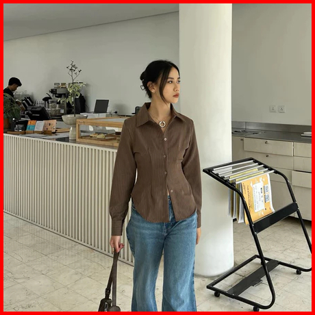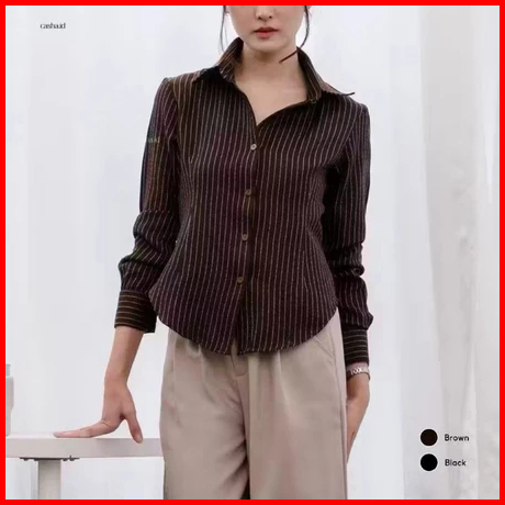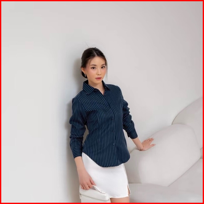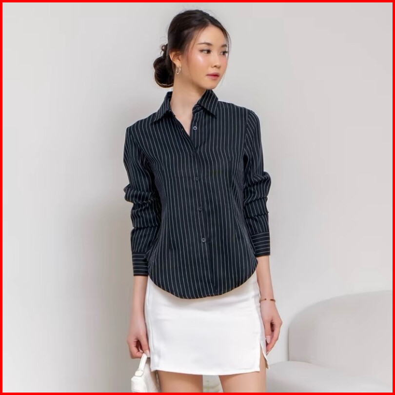 Deepa Luna Stripe Kemeja Fitted - Kemeja Wanita Fitted Stripe Salur Basic Casual - Kemeja Tali Belakang