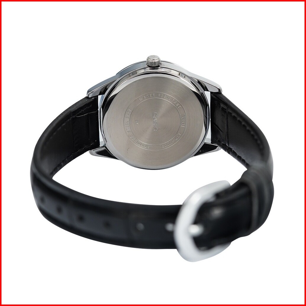 Jam Tangan Wanita Casio Ltp-v005l-7a Black Dial Black Leather Band