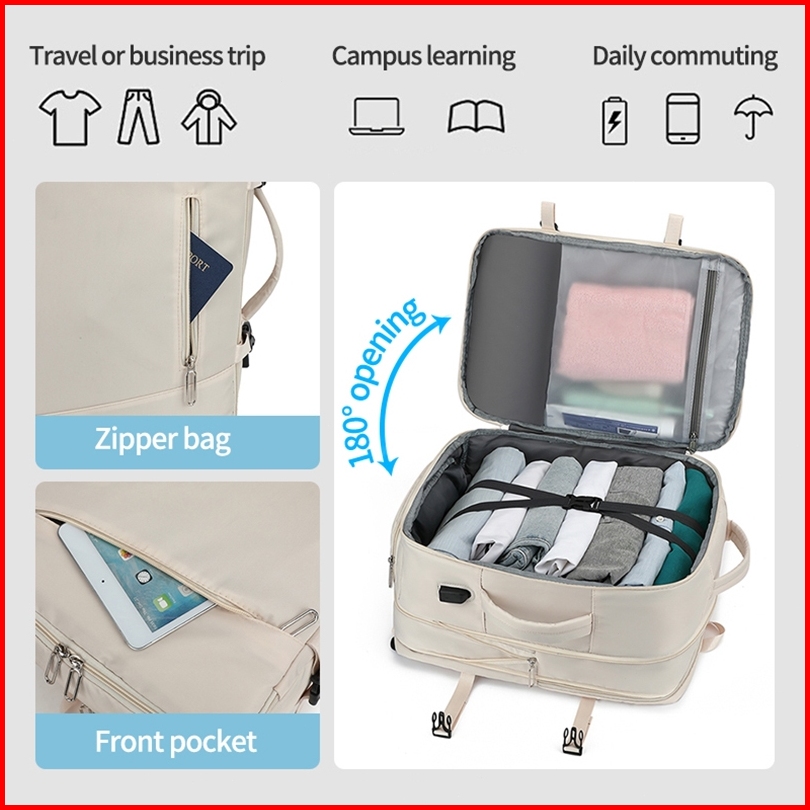 All Double Tas Ransel Wanita Tahan Air Ekspansi Tas Ransel Traveling Kapasitas Besar Tahan Air
