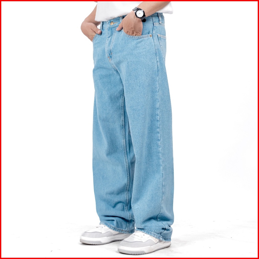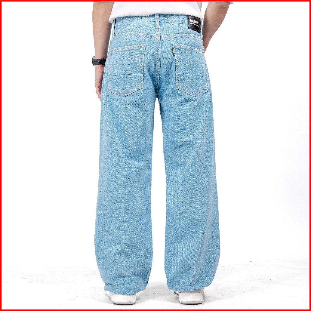 Gizmo - Celana Jeans Wide Leg Wisker Lebar Gombrong Skena Bioblitz Pria Loose Fit Jumbo Big Keren Bahan Denim