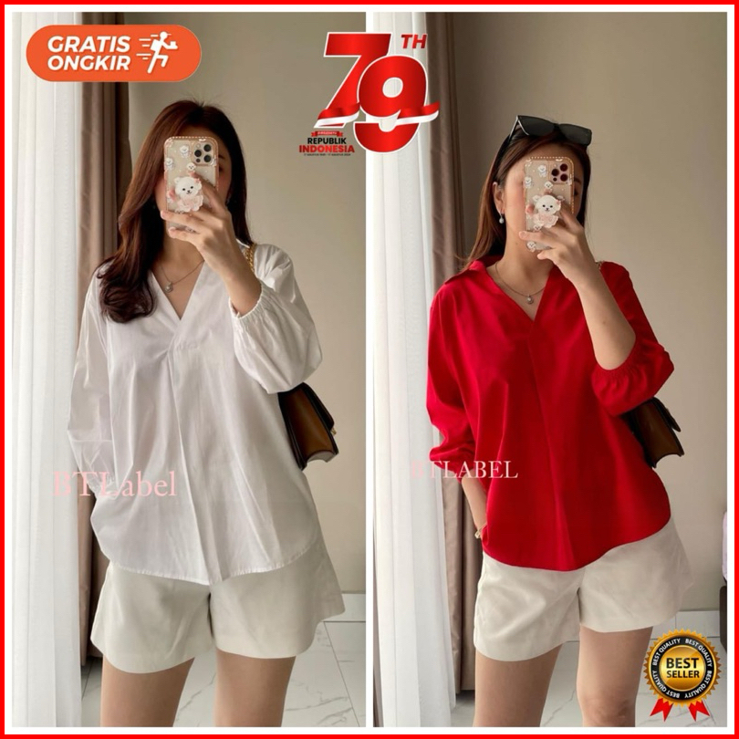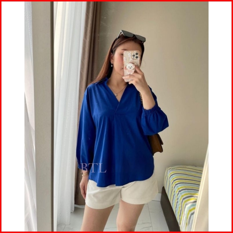 Btl - Kemeja Wanita Casual Lengan 7 8 Kemeja Basic Wanita