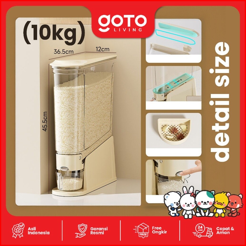 Goto Riselin Rice Dispenser Tempat Wadah Penyimpanan Beras 5kg 10kg